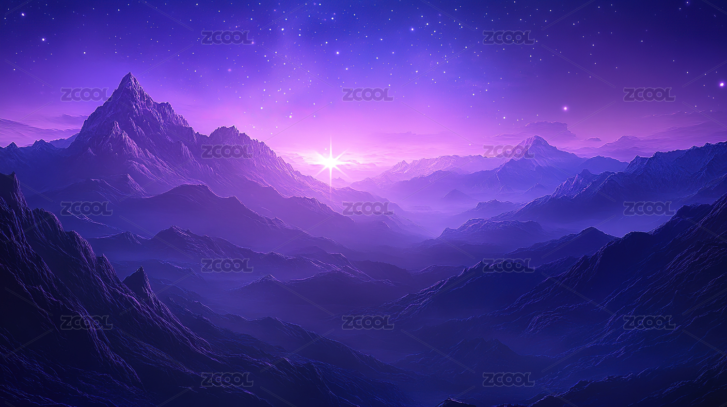 紫色,自然,深蓝,壮丽,夜景,山脉,星空,银河,连绵,夜晚