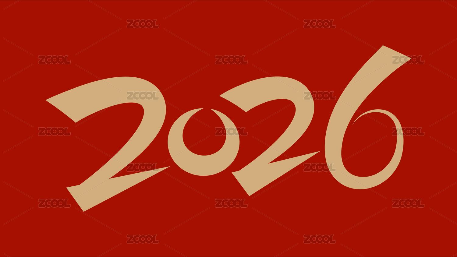 2026,新年,数字,书法,字体,红色,笔触,艺术,设计,春节