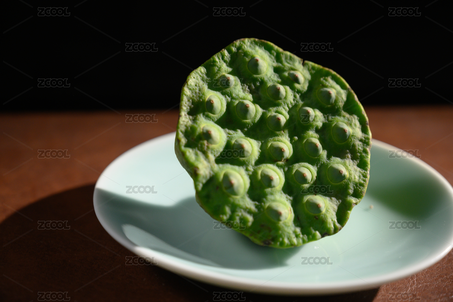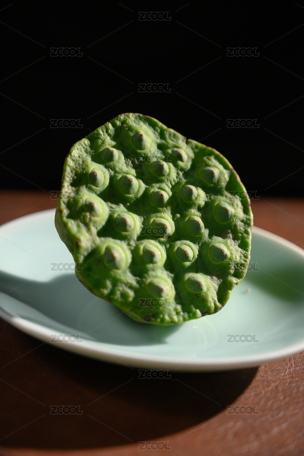 桌面上的盘子里的美味可口的新鲜莲蓬