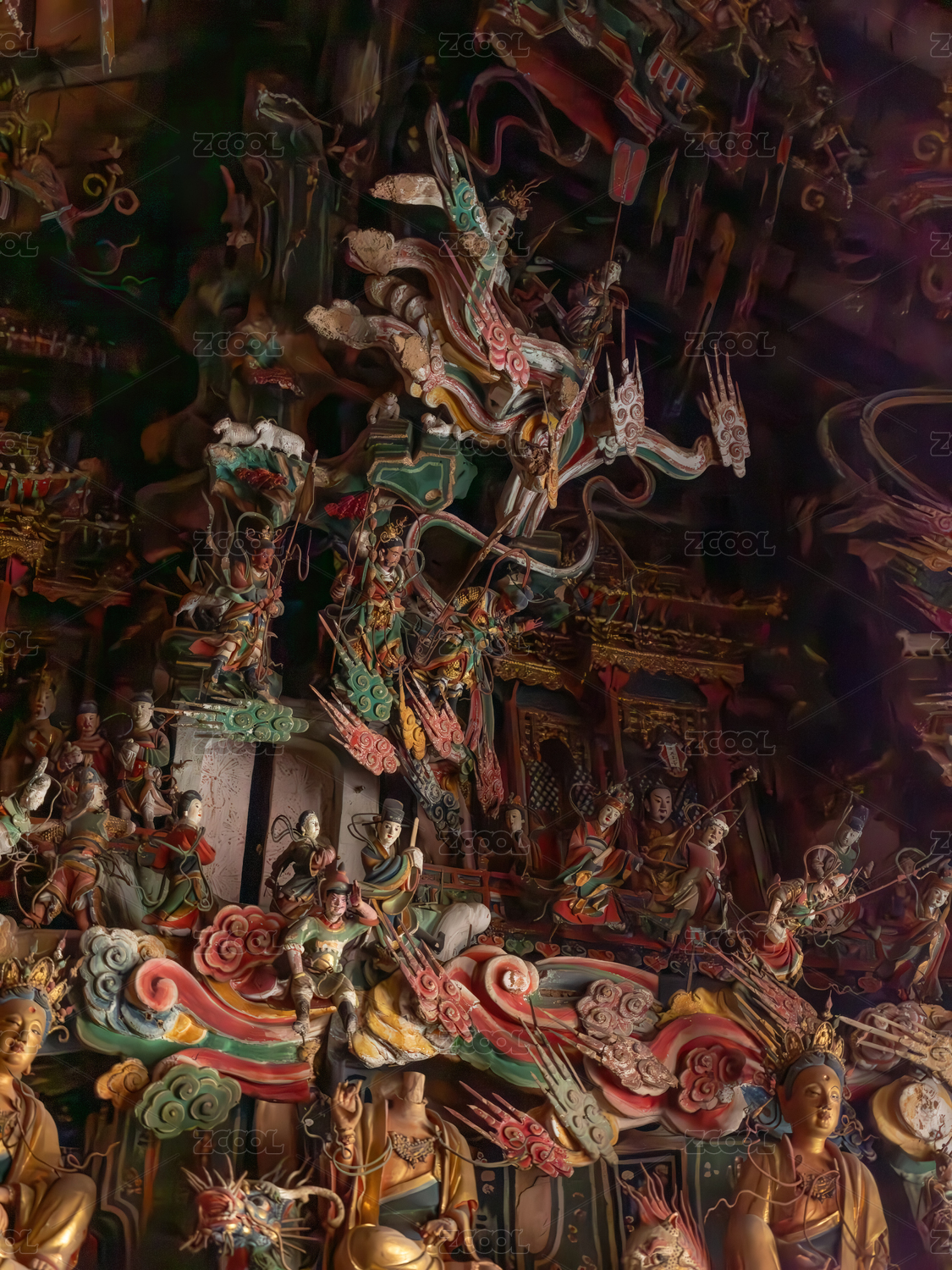 山西临汾隰县小西天内的明清贴金悬塑及彩绘
