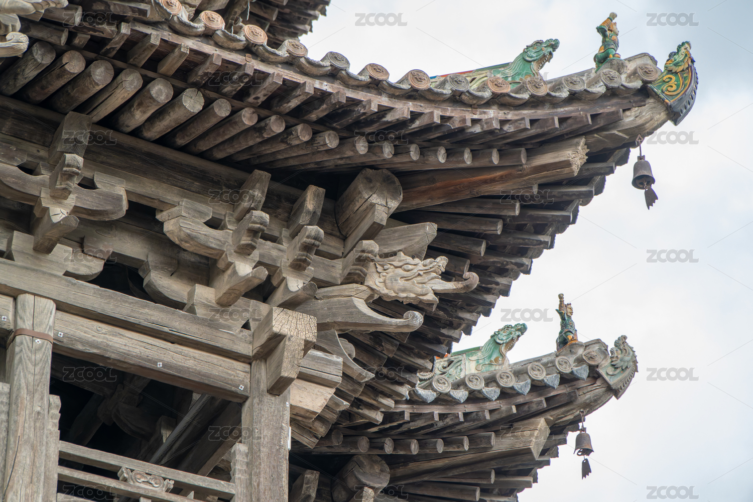 山西晋城古建筑飞檐斗拱上的装饰细节