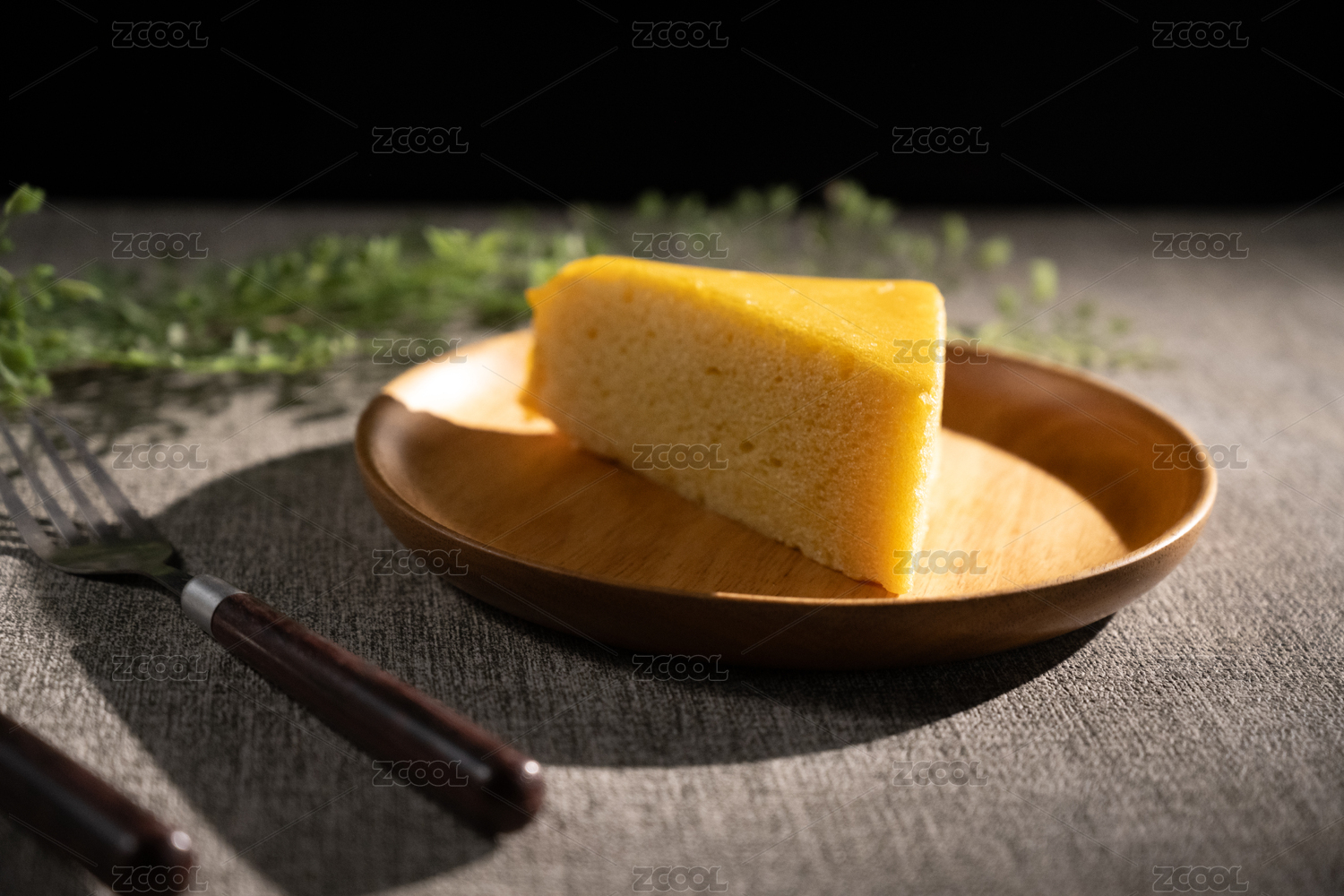 桌面上的盘子里的美味可口的哈密瓜夹心蛋糕