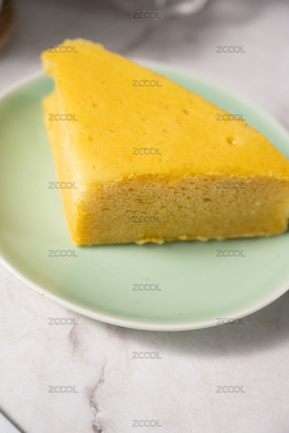 桌面上的盘子里的美味可口的哈密瓜夹心蛋糕