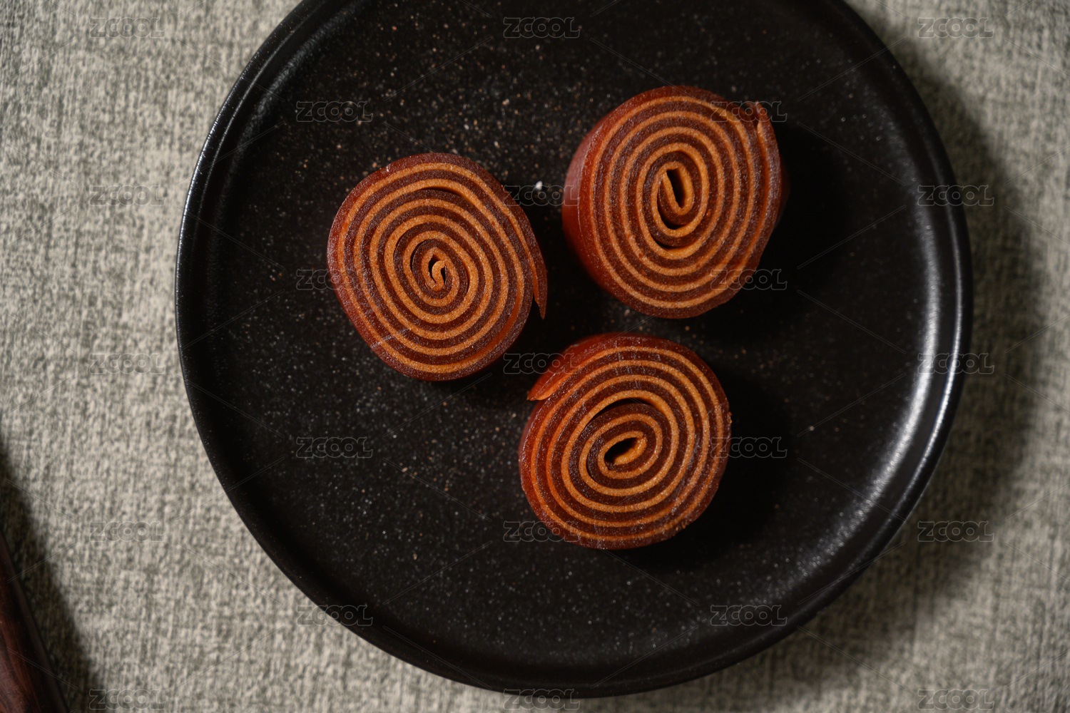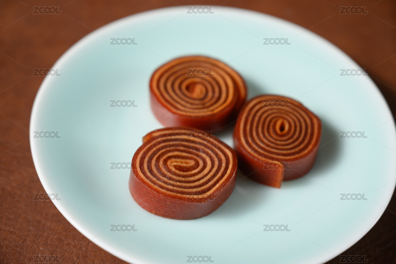 桌面上的盘子里的美味可口的山楂卷