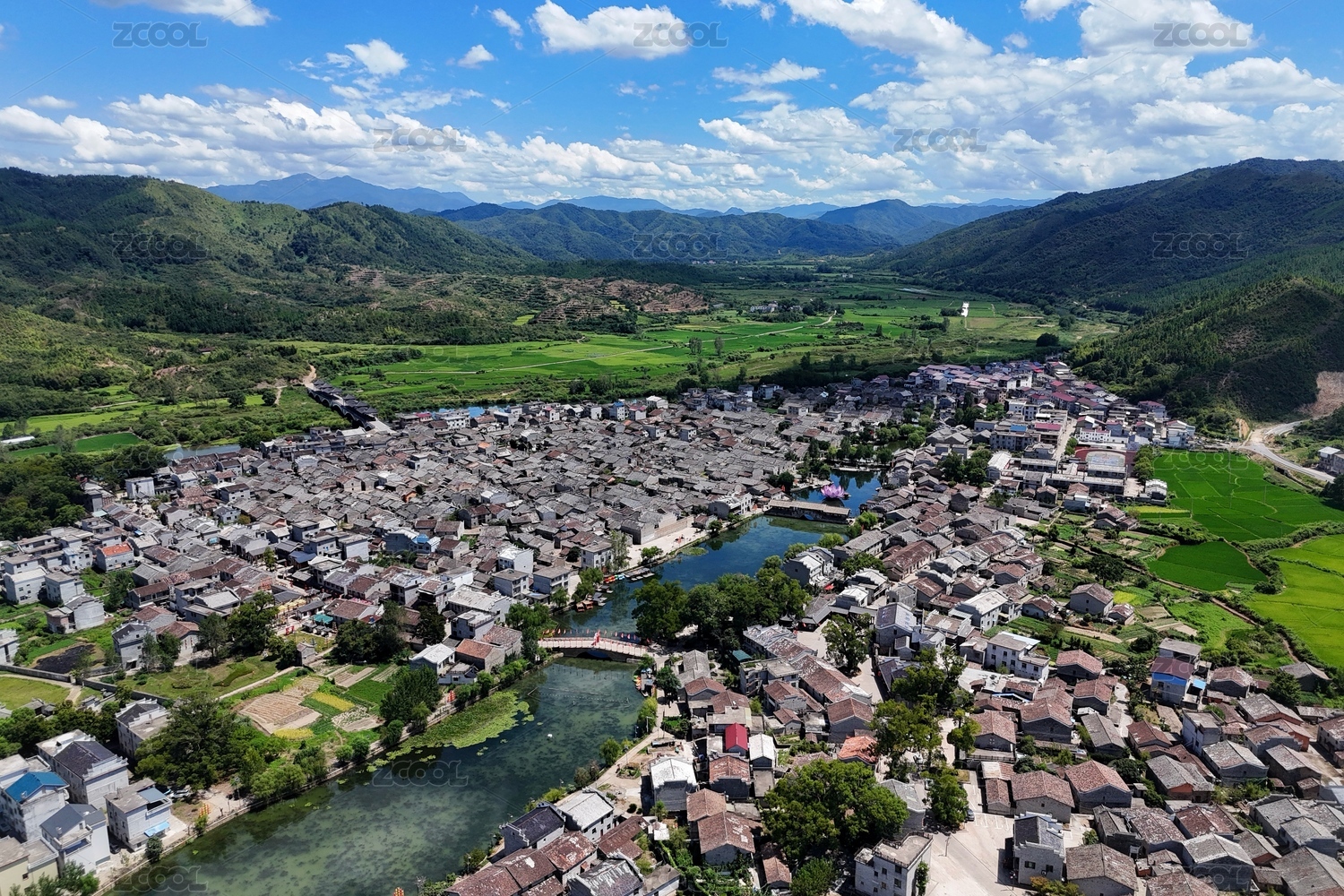 呈坎古村落航拍自然风光
