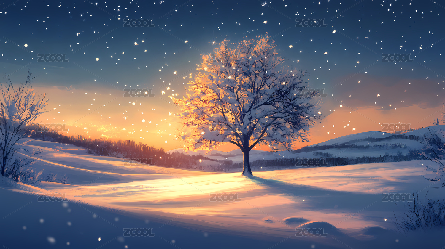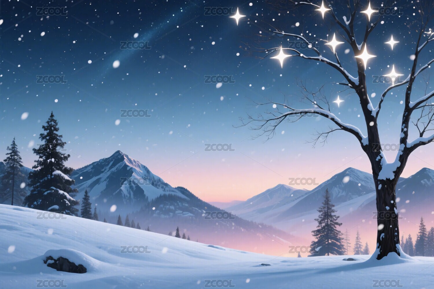 树木,美丽,宁静,夜空,祥和,美好,雪花,寒冷,壮观,雪地
