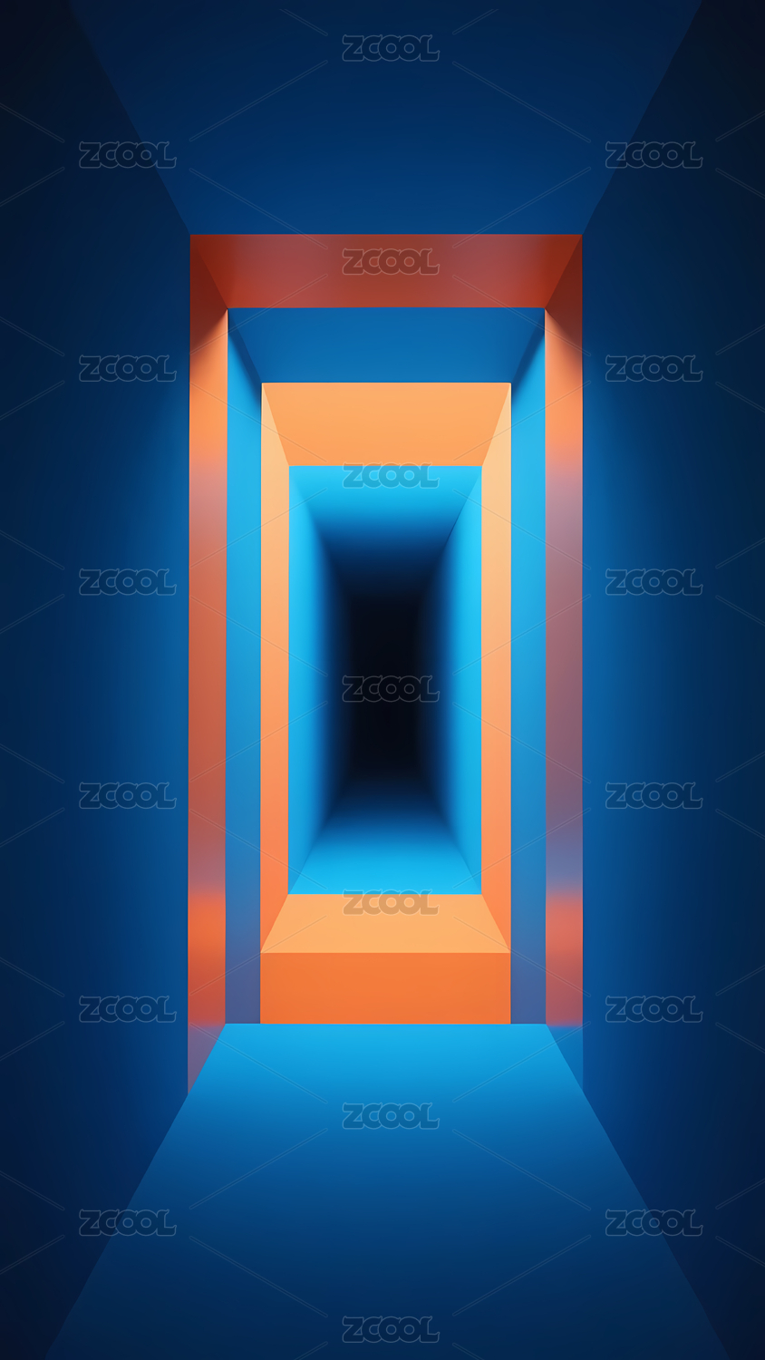 透明橙色几何展示立方体