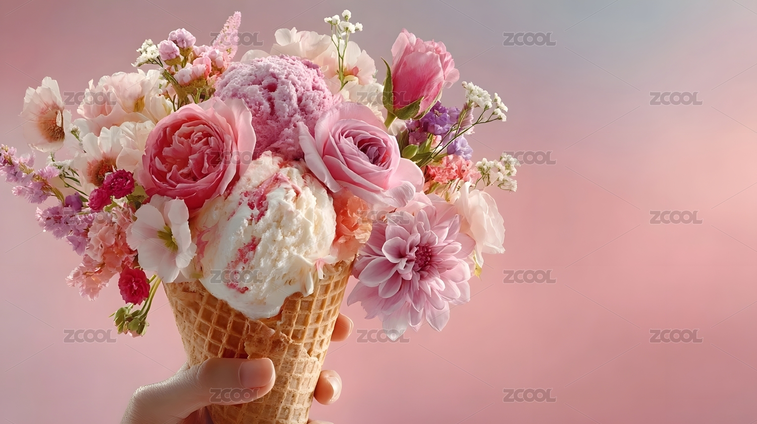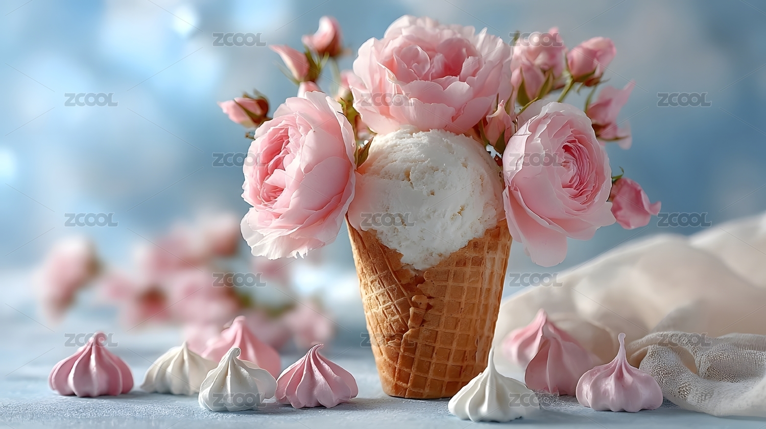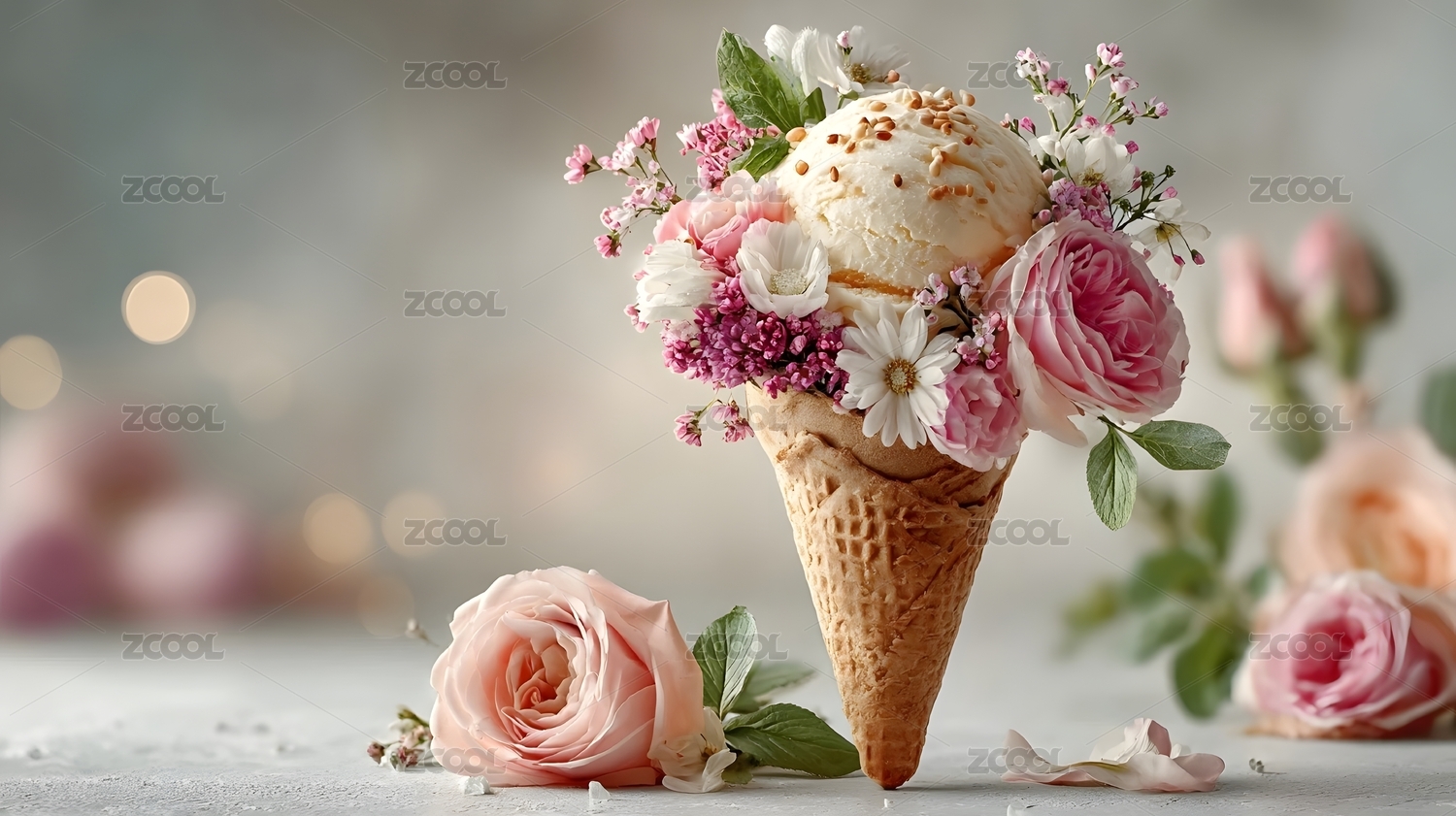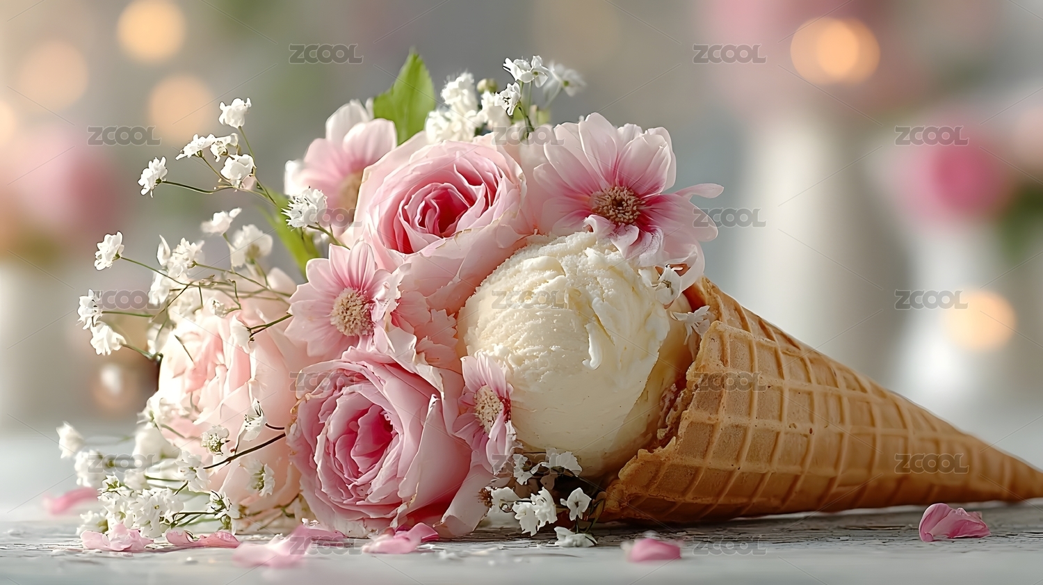 冰淇淋,花朵,花束,花瓣,甜筒,花叶,白色,花,花蕊,冰激凌
