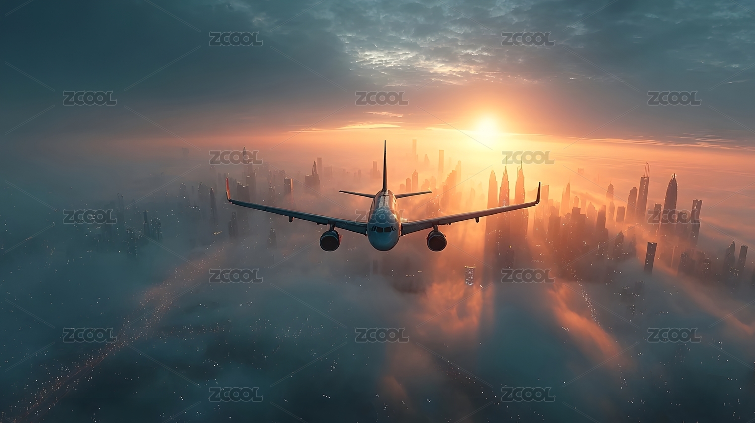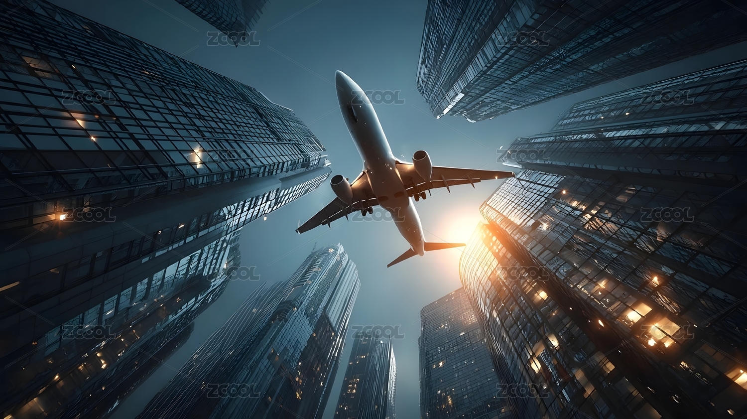 现代,科技,光线,飞机,高楼,城市,夜景,灯光,建筑,天空