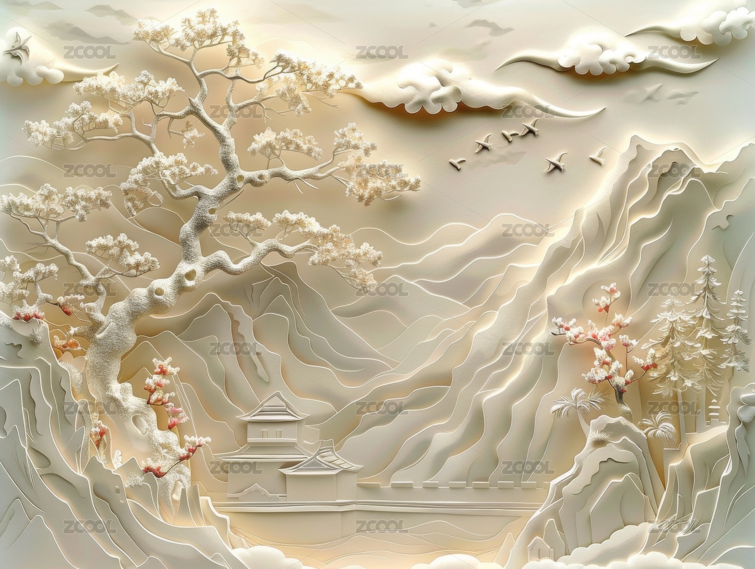 山水,风景,自然,建筑,艺术,山峰,河流,树木,传统,景观