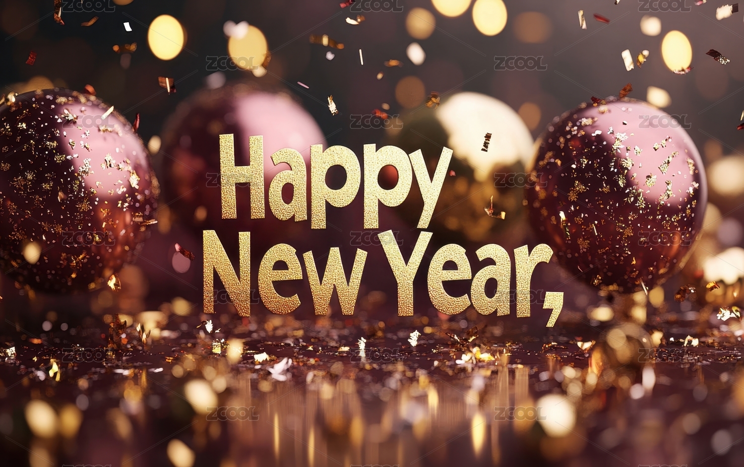 英文新年快乐气球彩带背景