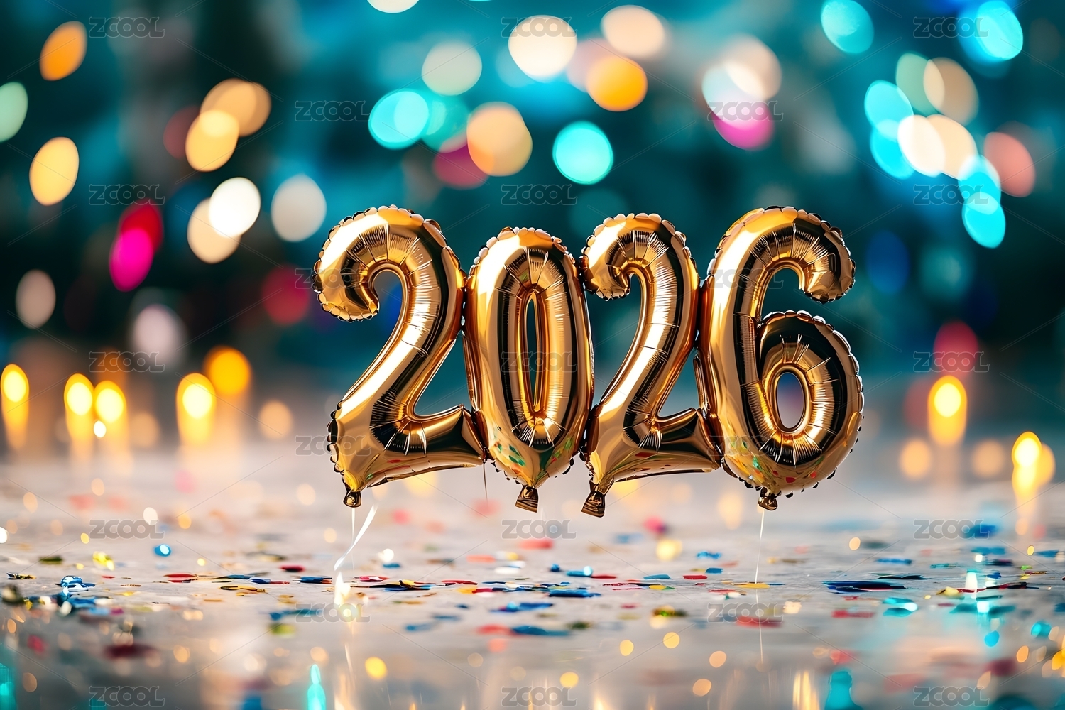 金色2026气球与节日氛围