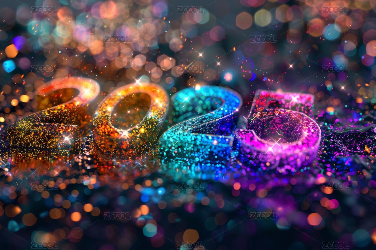 2024年庆祝场景,彩色气球与亮片