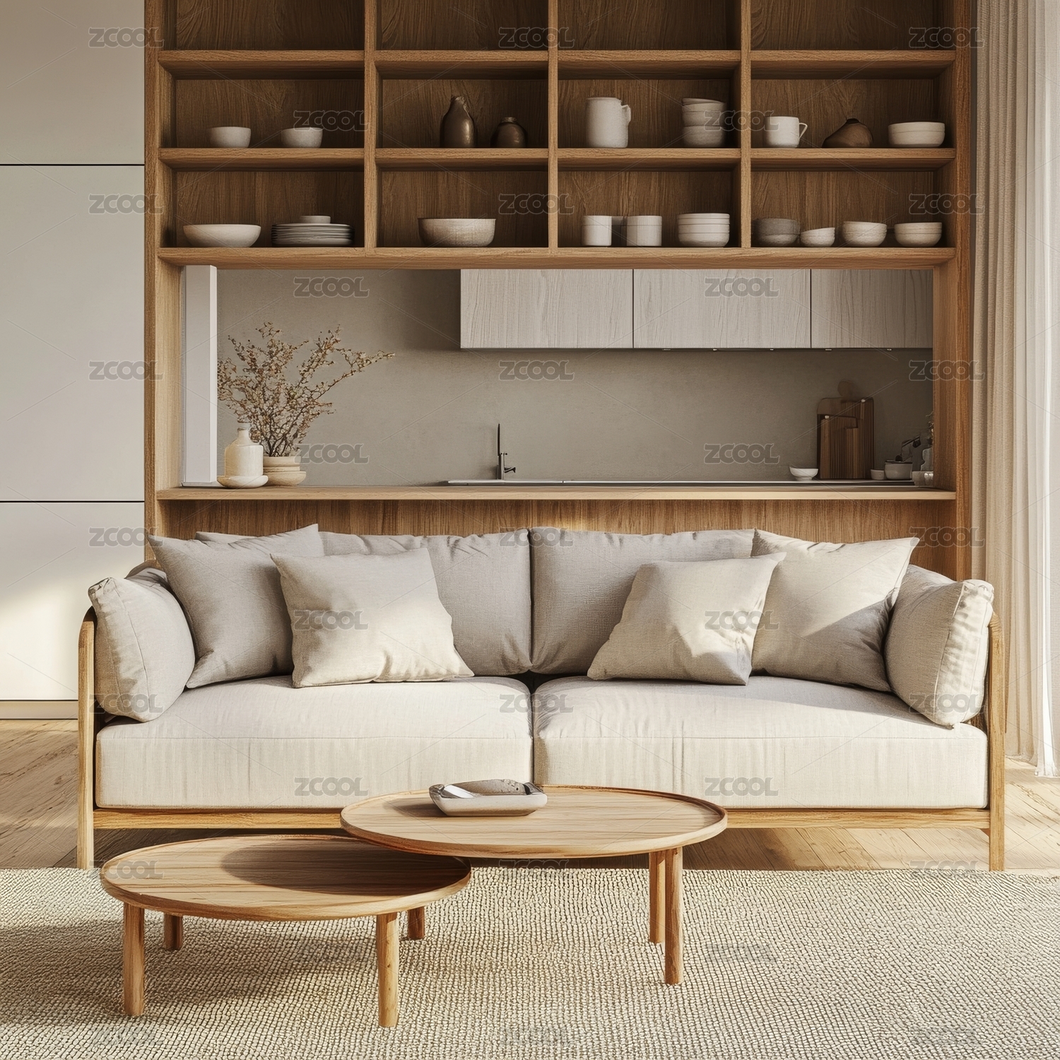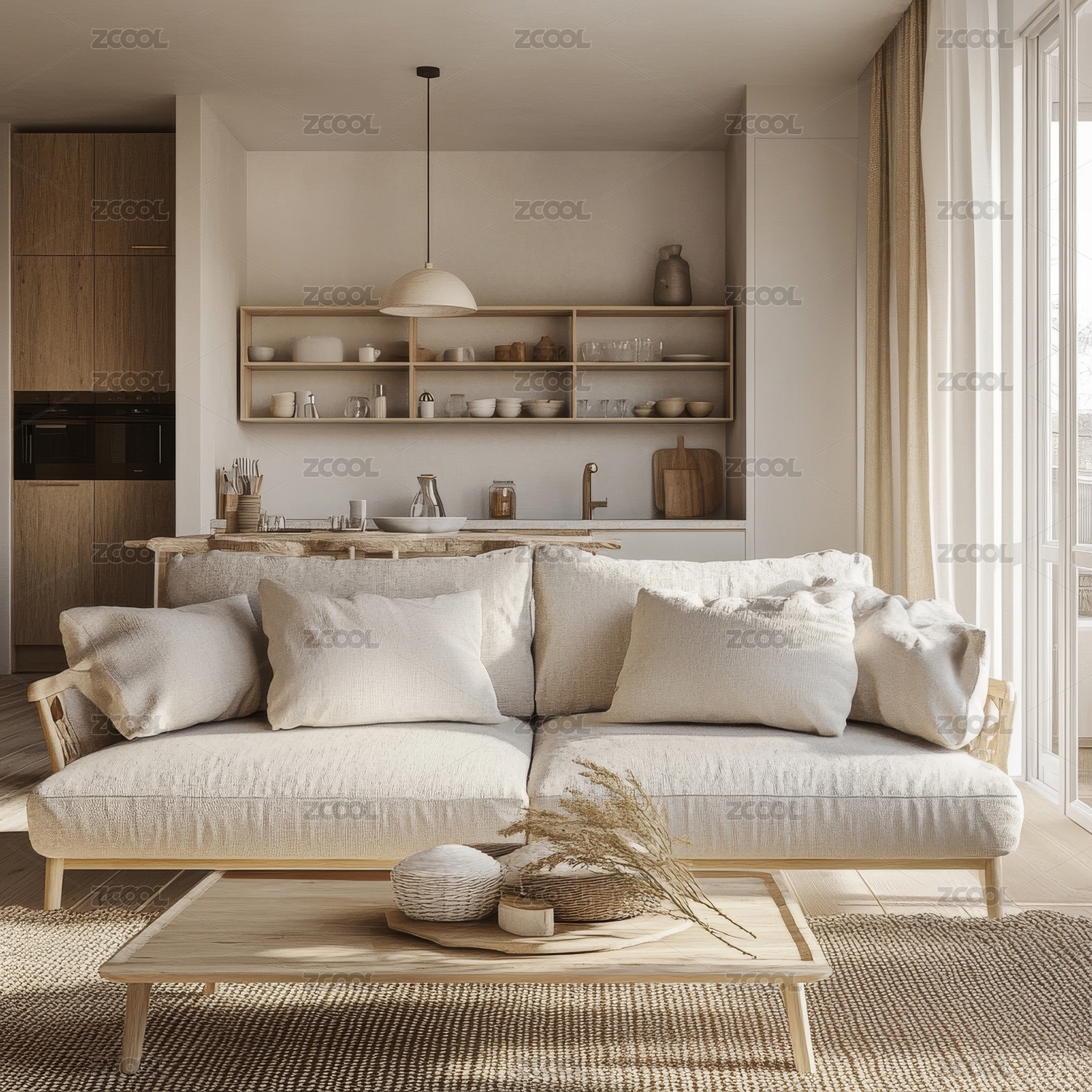 3D渲染现代北欧风格客厅沙发茶几室内设计