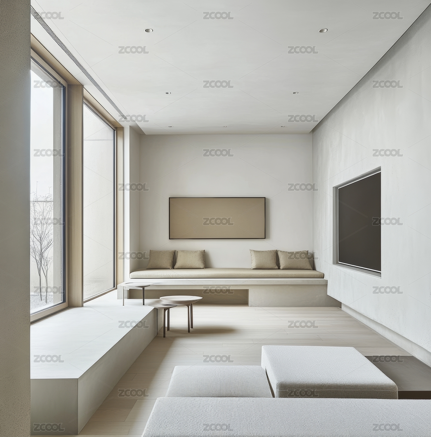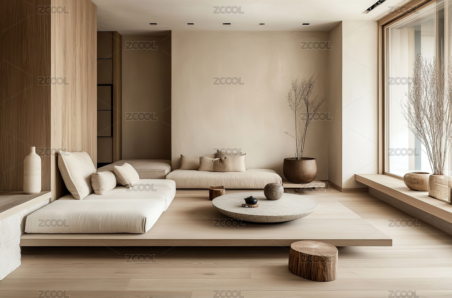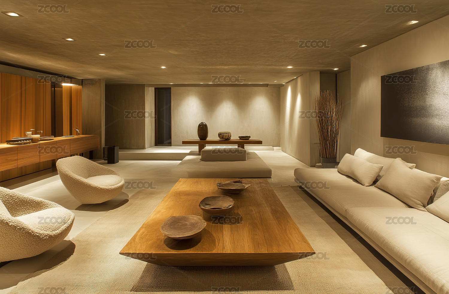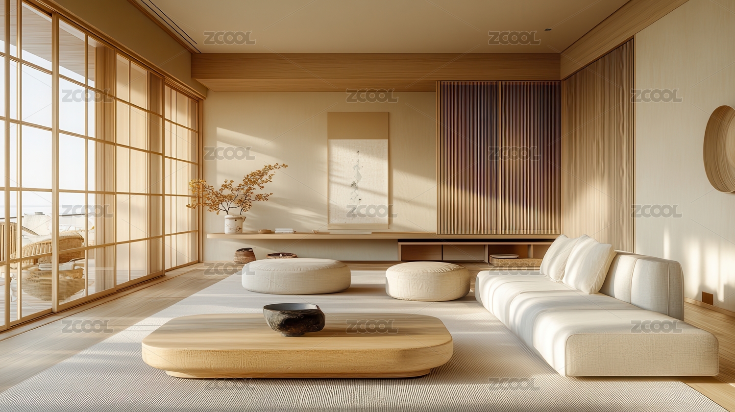 客厅,厨房,简约,现代,开放式,沙发,书架,木质,温馨,自然光