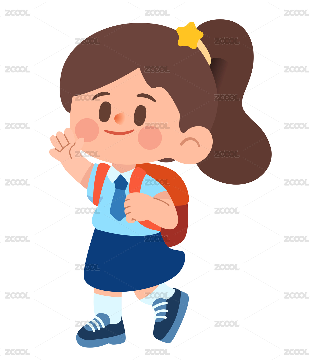 卡通开学季背着书包去上学可爱女孩教育插画