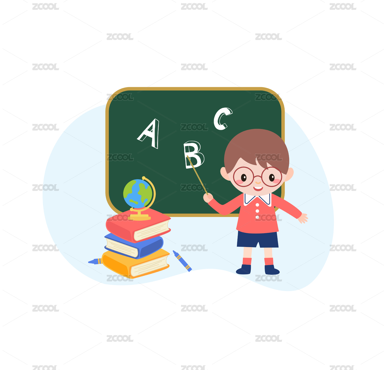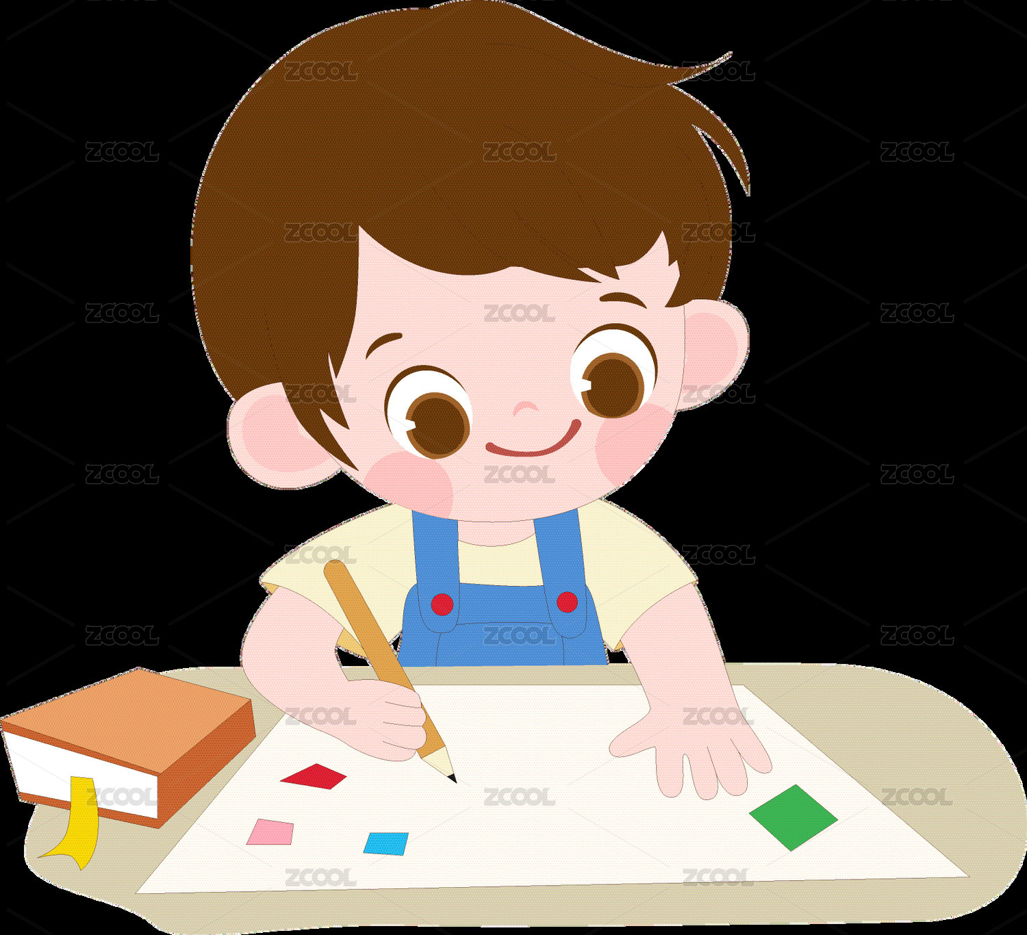 卡通男孩课桌前认真学习小朋友学生儿童插画