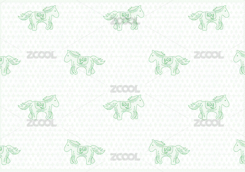 绿色系卡通马矢量花纹图案