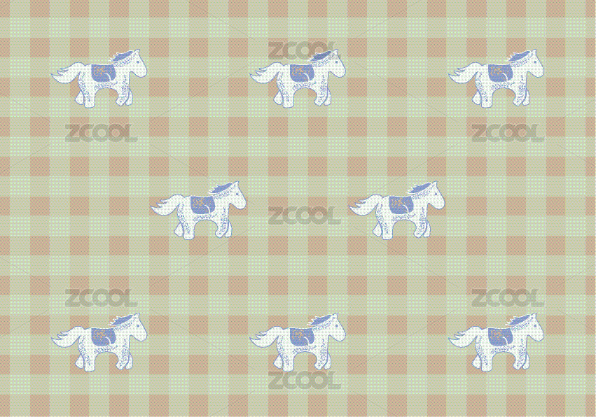 绿色系卡通马矢量花纹图案