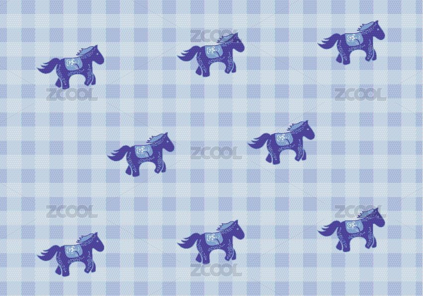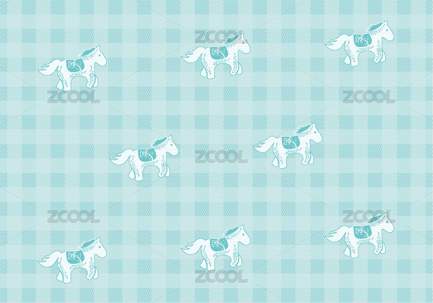 蓝色系卡通马矢量花纹图案