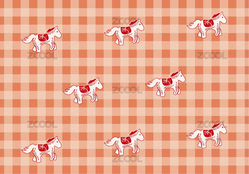 橙红色卡通马矢量花纹图案