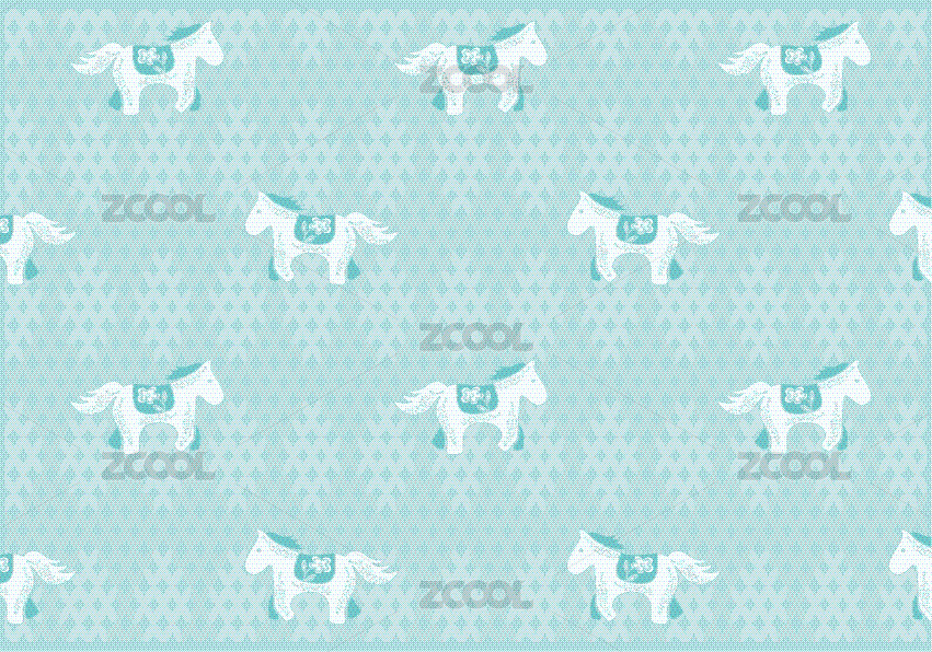 蓝色系卡通马矢量花纹图案