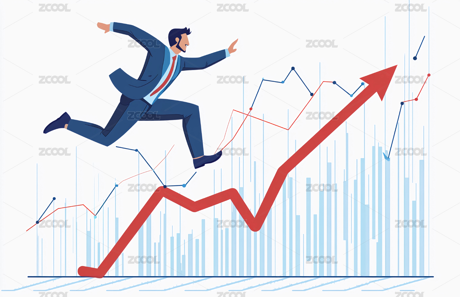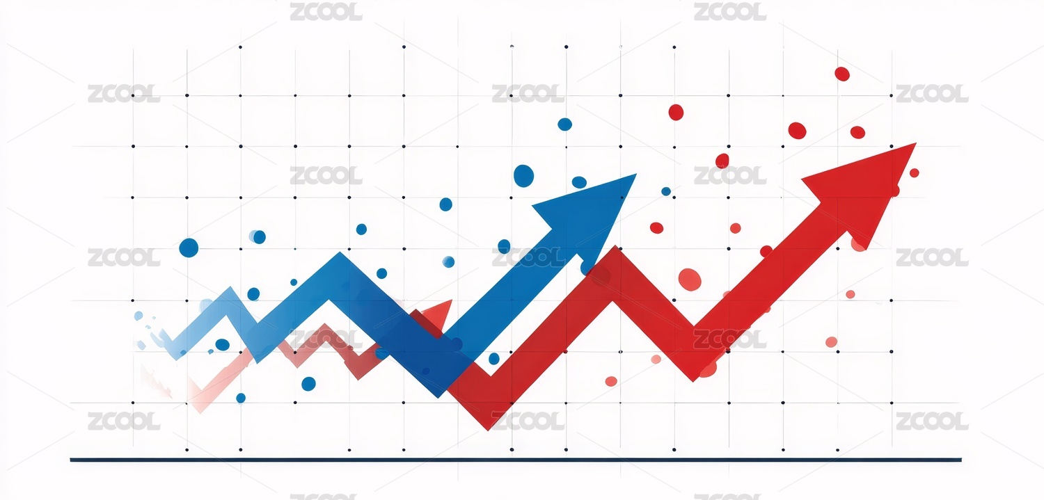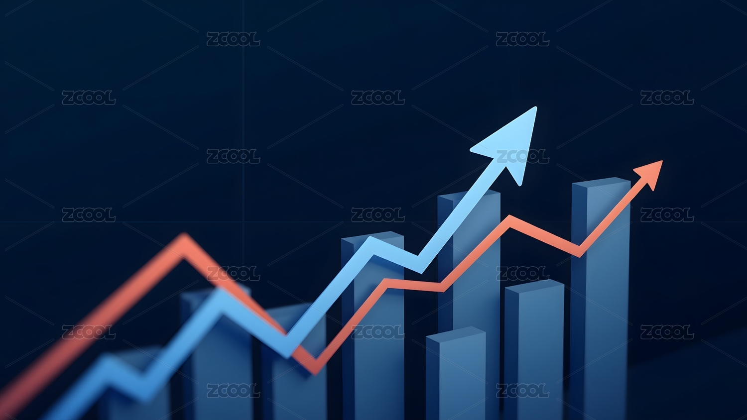 蓝色背景中股市涨跌线和波动箭头组成的金融类插图