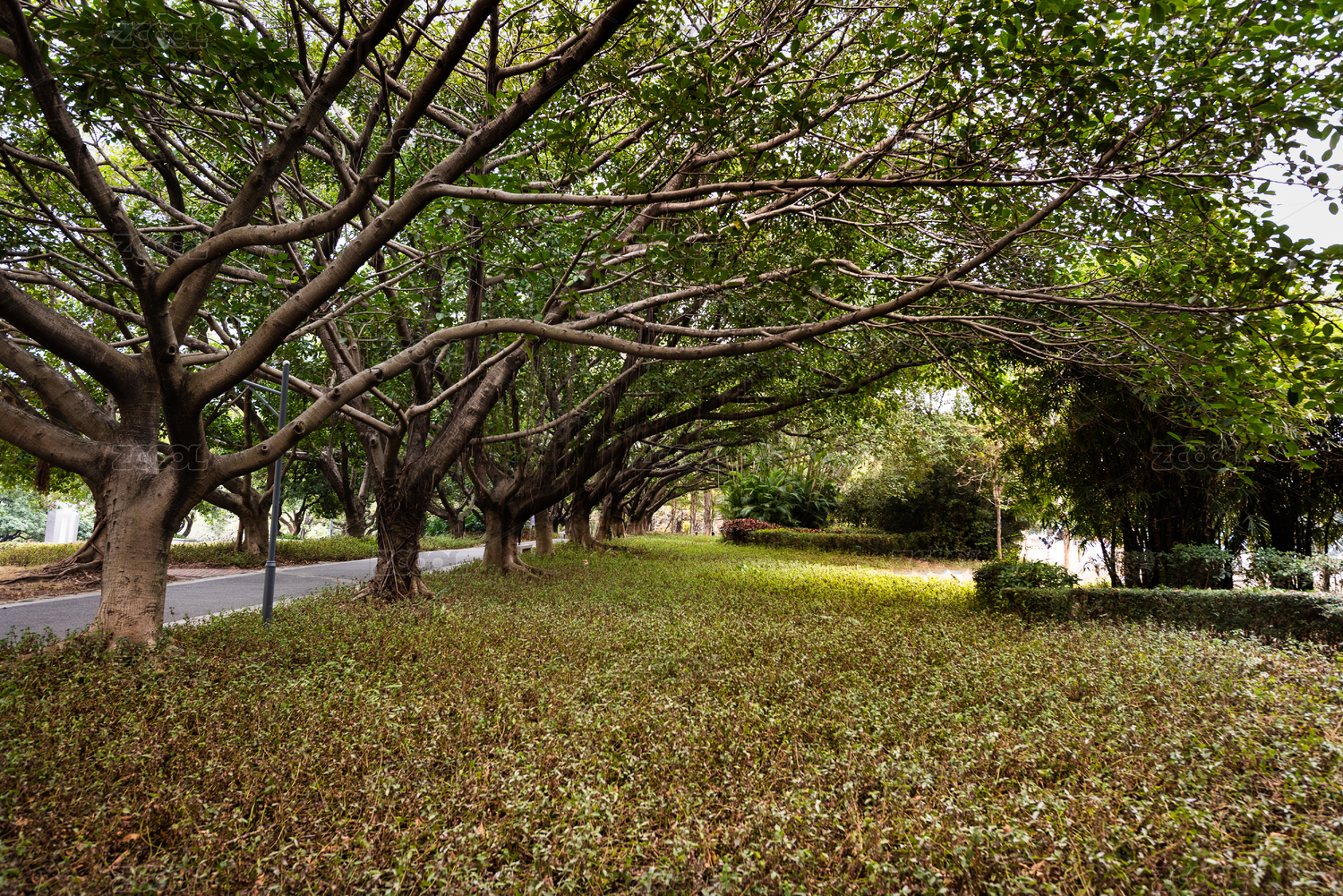 广州南沙蒲洲花园绿色草坪树林自然景观
