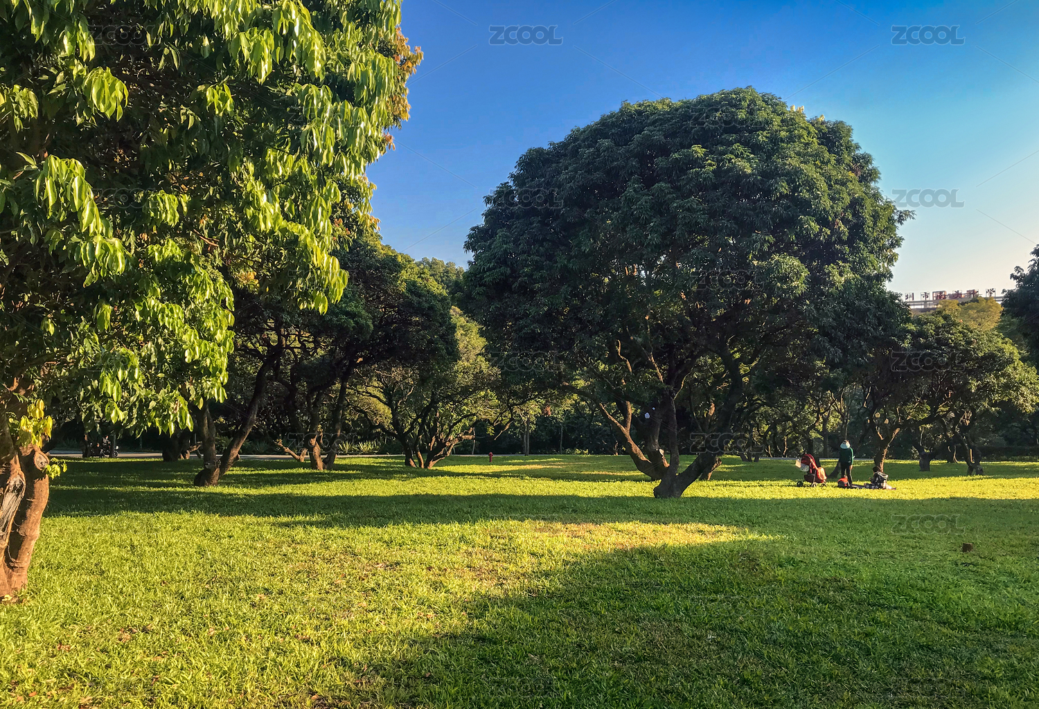 草地,公园,清新,氧气,生长,植物,草坪,树木,阳光,树林