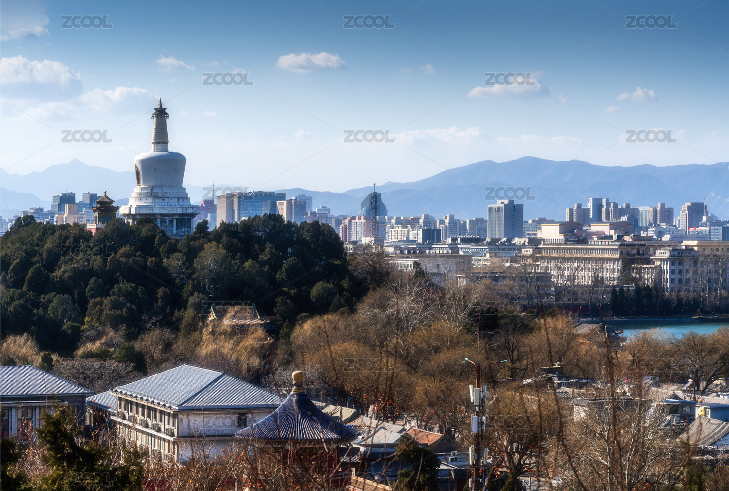 北京景山公园视角拍摄北海公园白塔