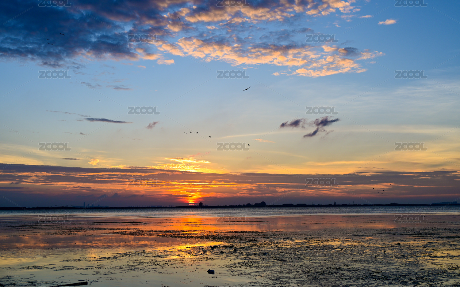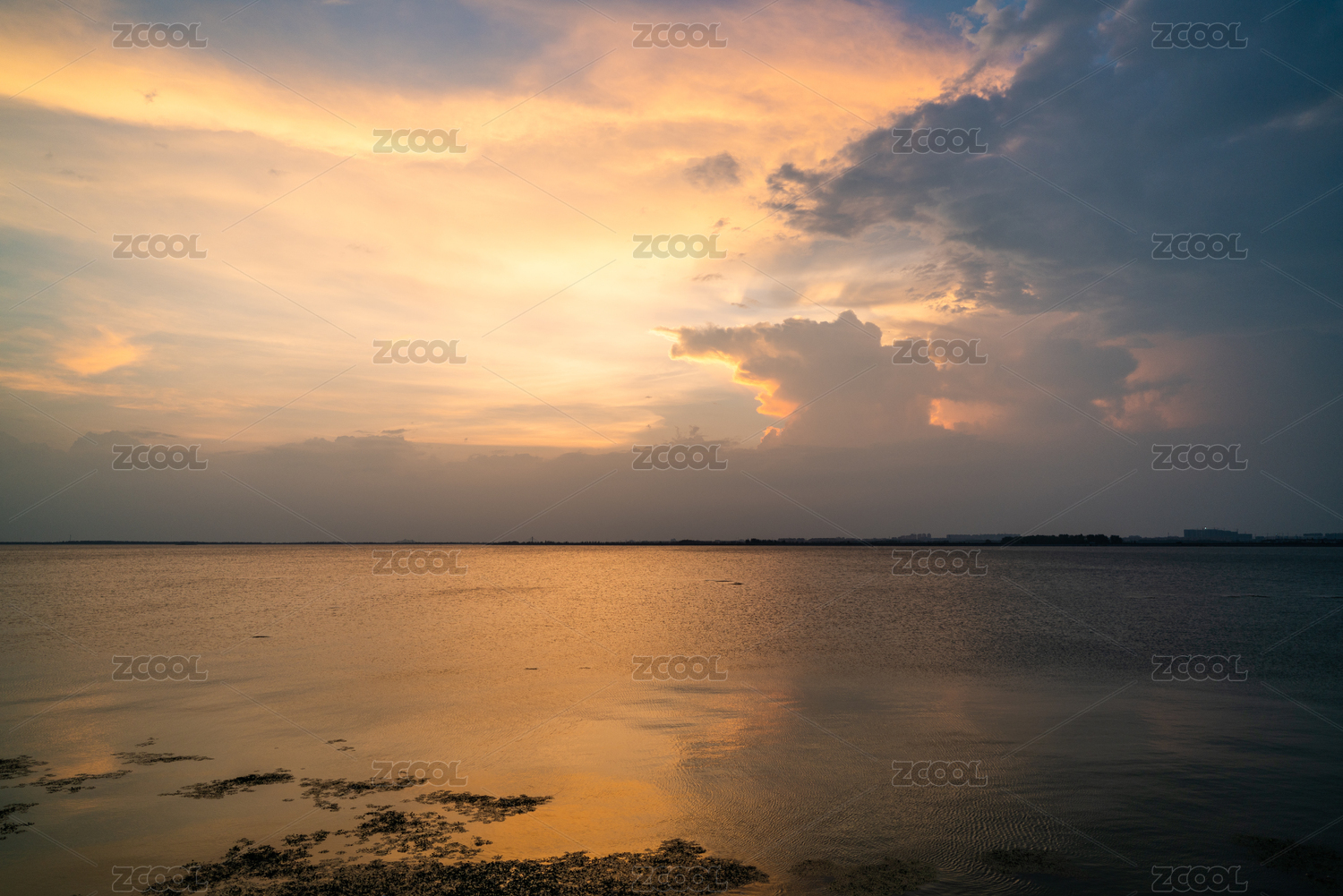 户外海岸线日落时天空云彩