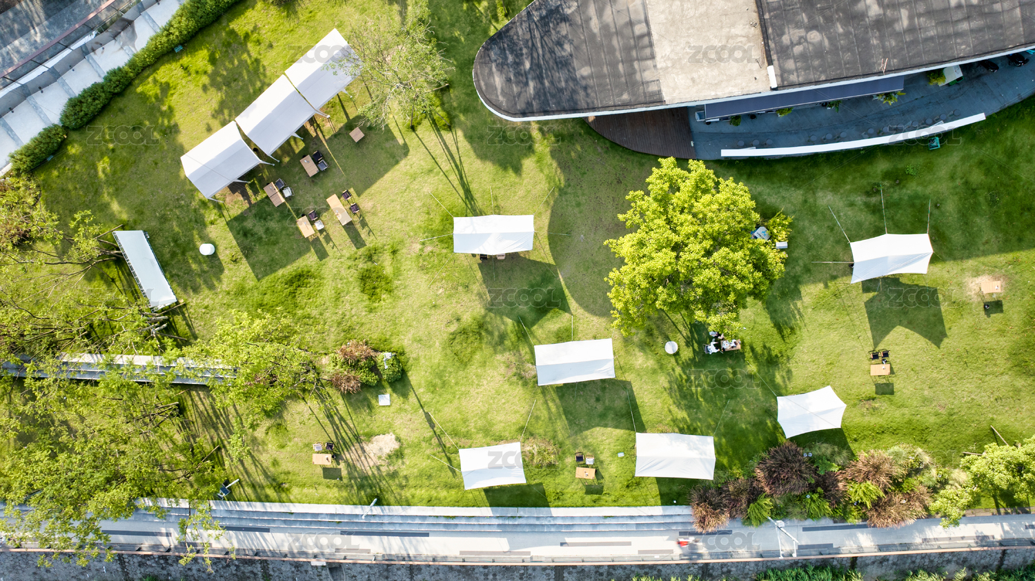 四川成都东安湖公园西江河廊桥分栋桥俯拍