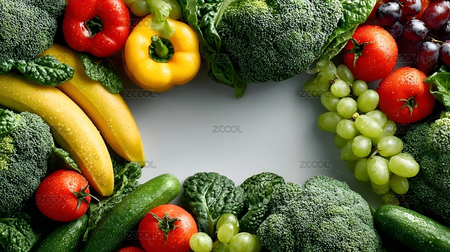 新鲜蔬菜水果的丰富组合