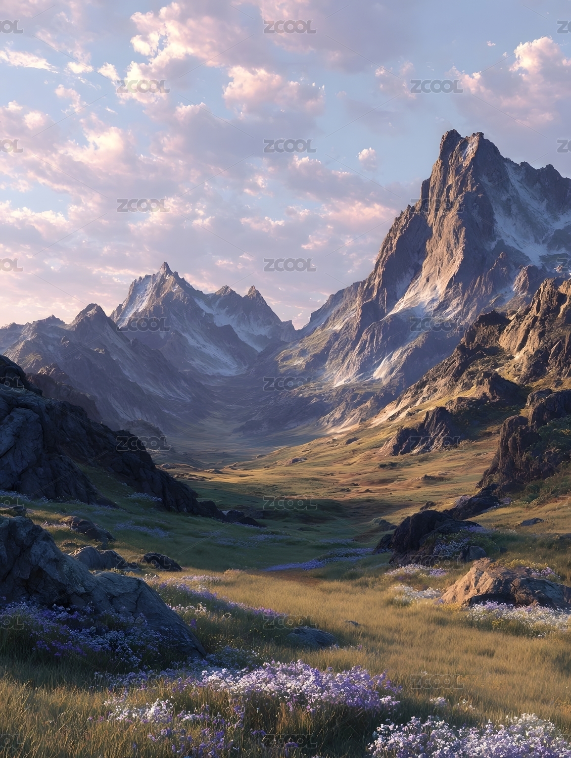 花瓣,花朵,天空,山峰,绿色,云,岩石,阳光,自然,山谷