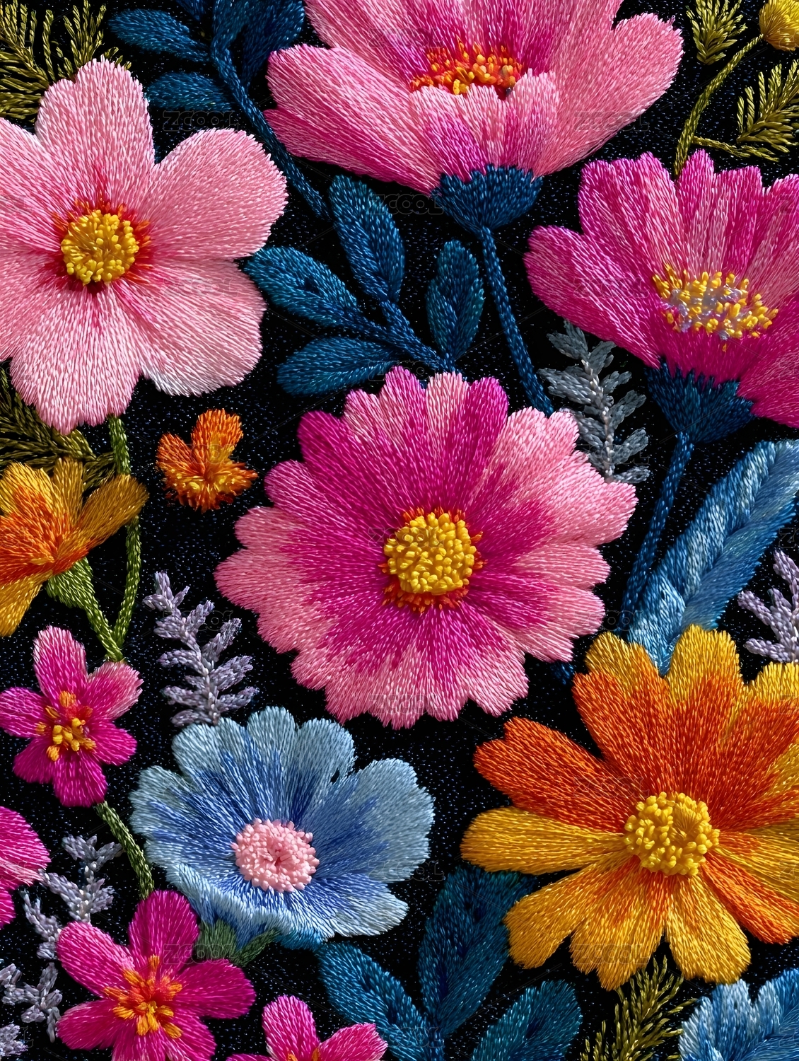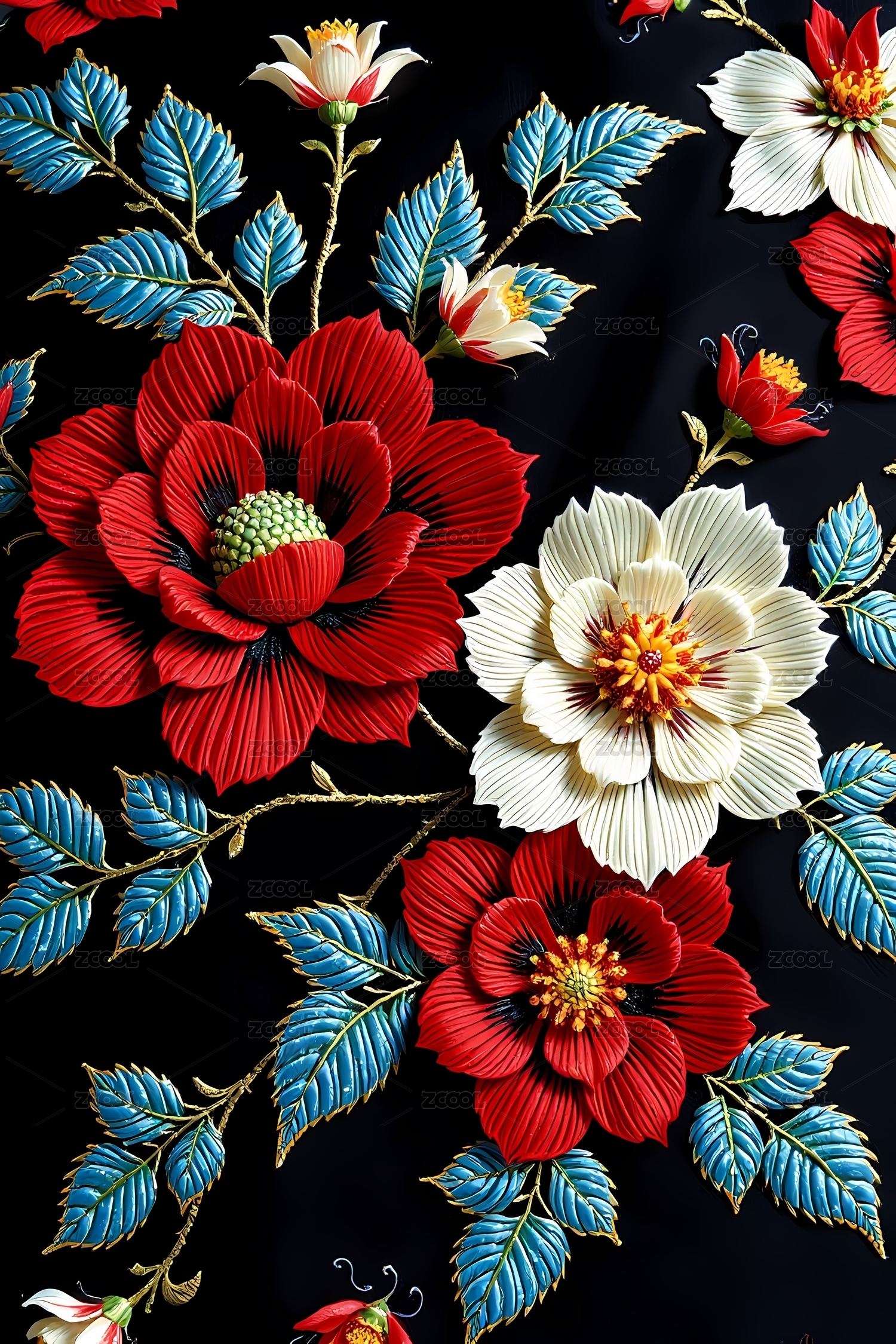 背景,蓝色,装饰,花瓣,花朵,绿色,红色,叶子,植物,刺绣