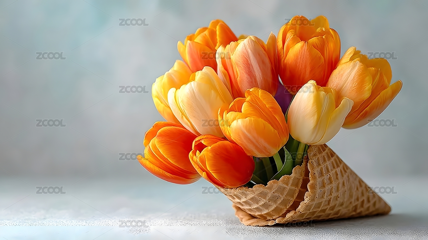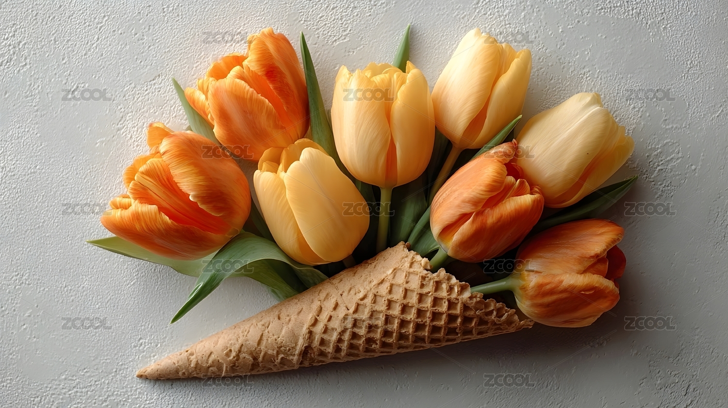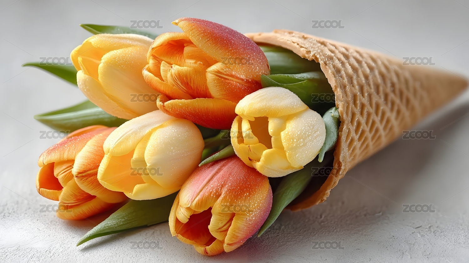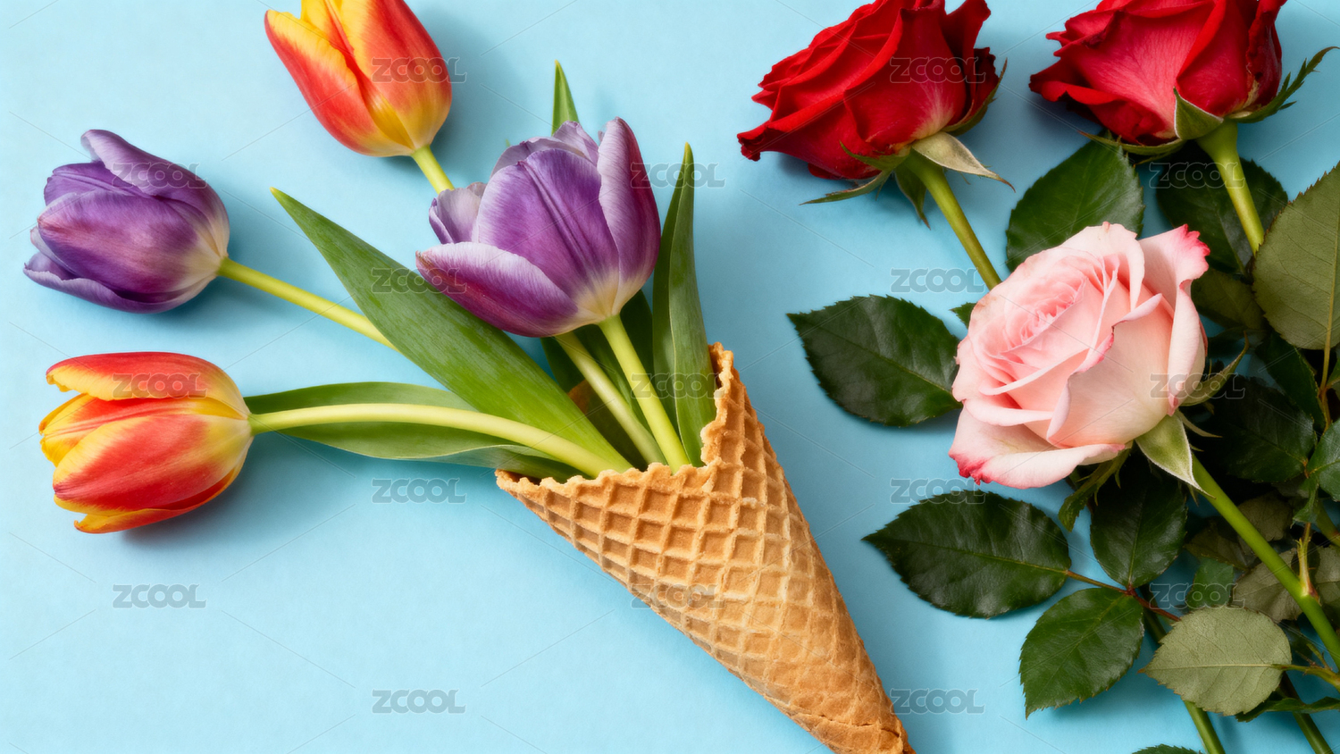 绿色,白色,花瓣,花束,花心,粉色,装饰,冰淇淋,甜筒,冰激凌
