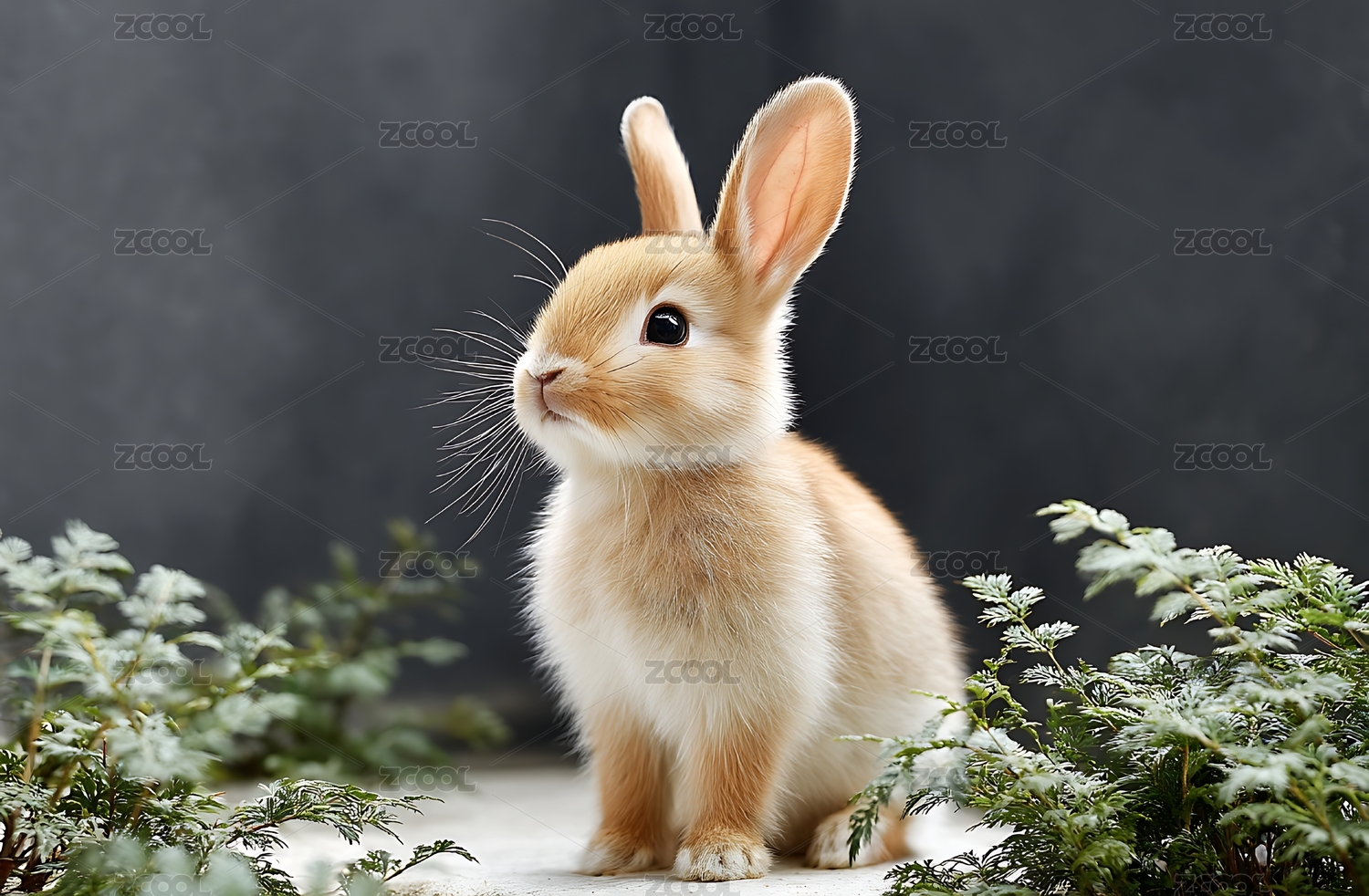 白兔萌态特写灰底照