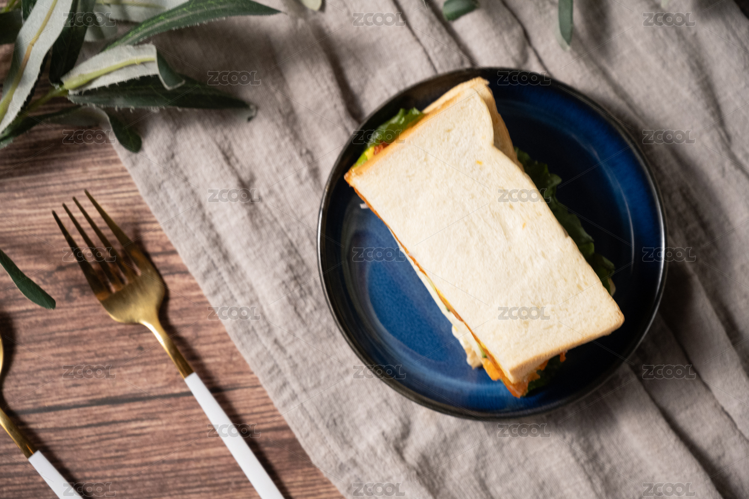 桌面上的盘子里的美味可口的三文治