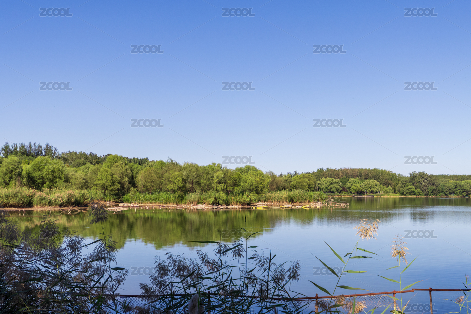 北京奥林匹克森林公园树木园绿地湖面倒影