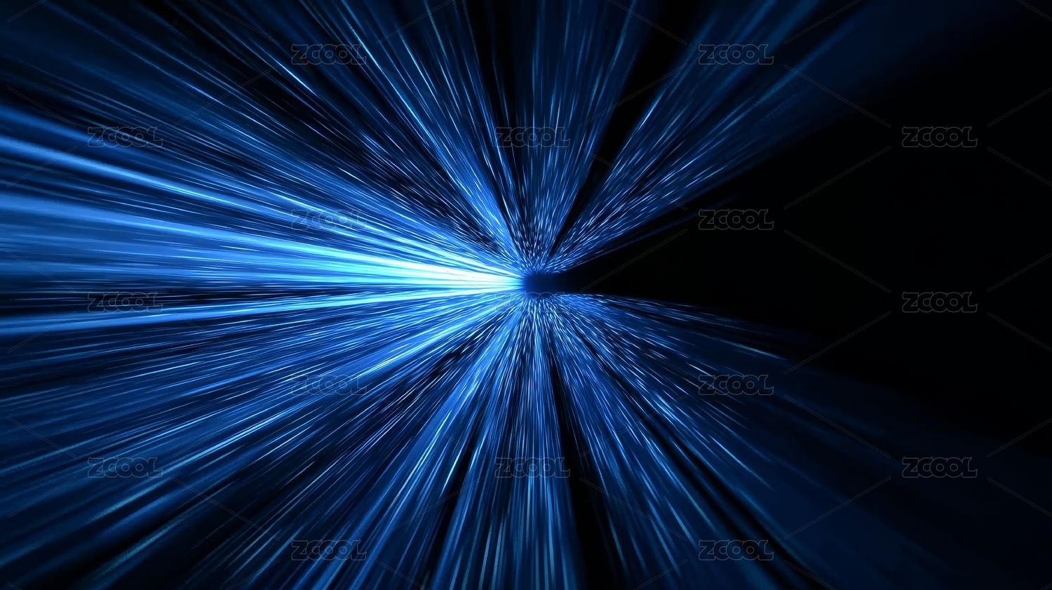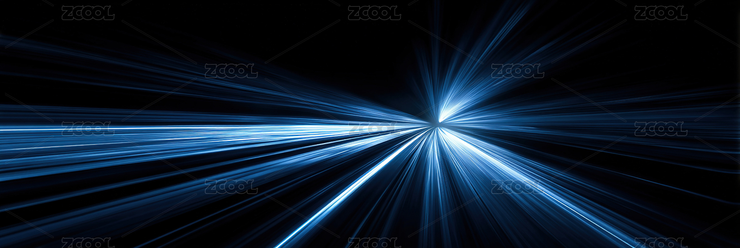 蓝色光线汇聚形成光芒四射效果