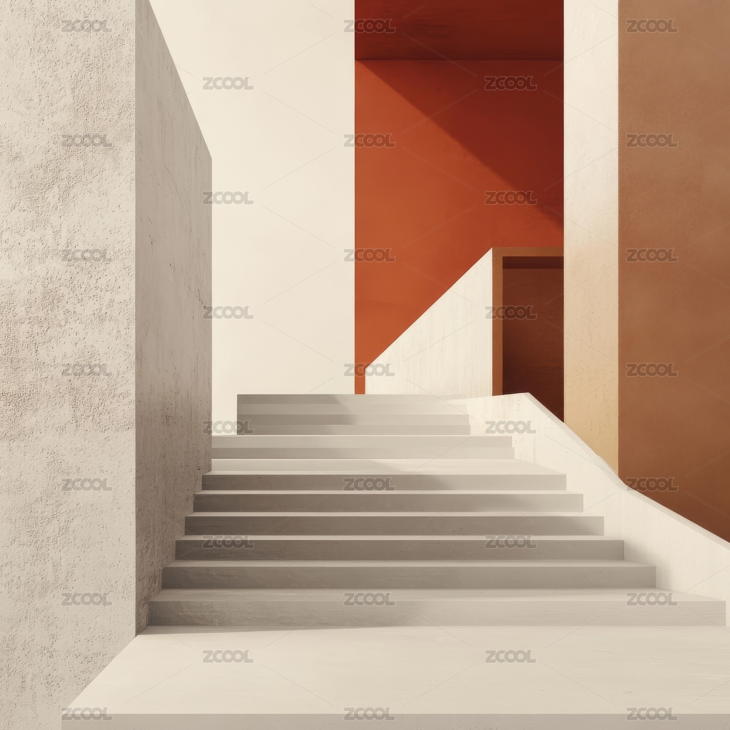 现代建筑楼梯与橙色墙面