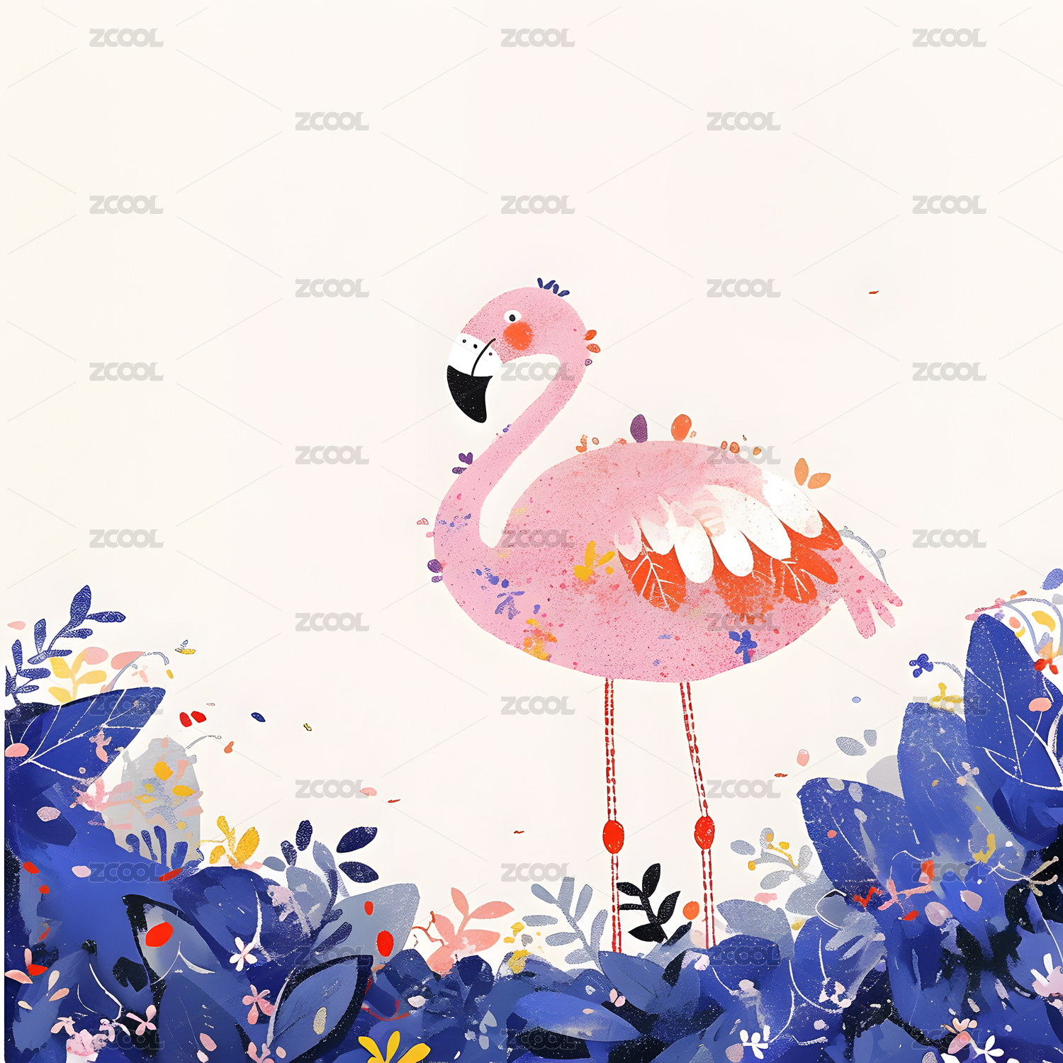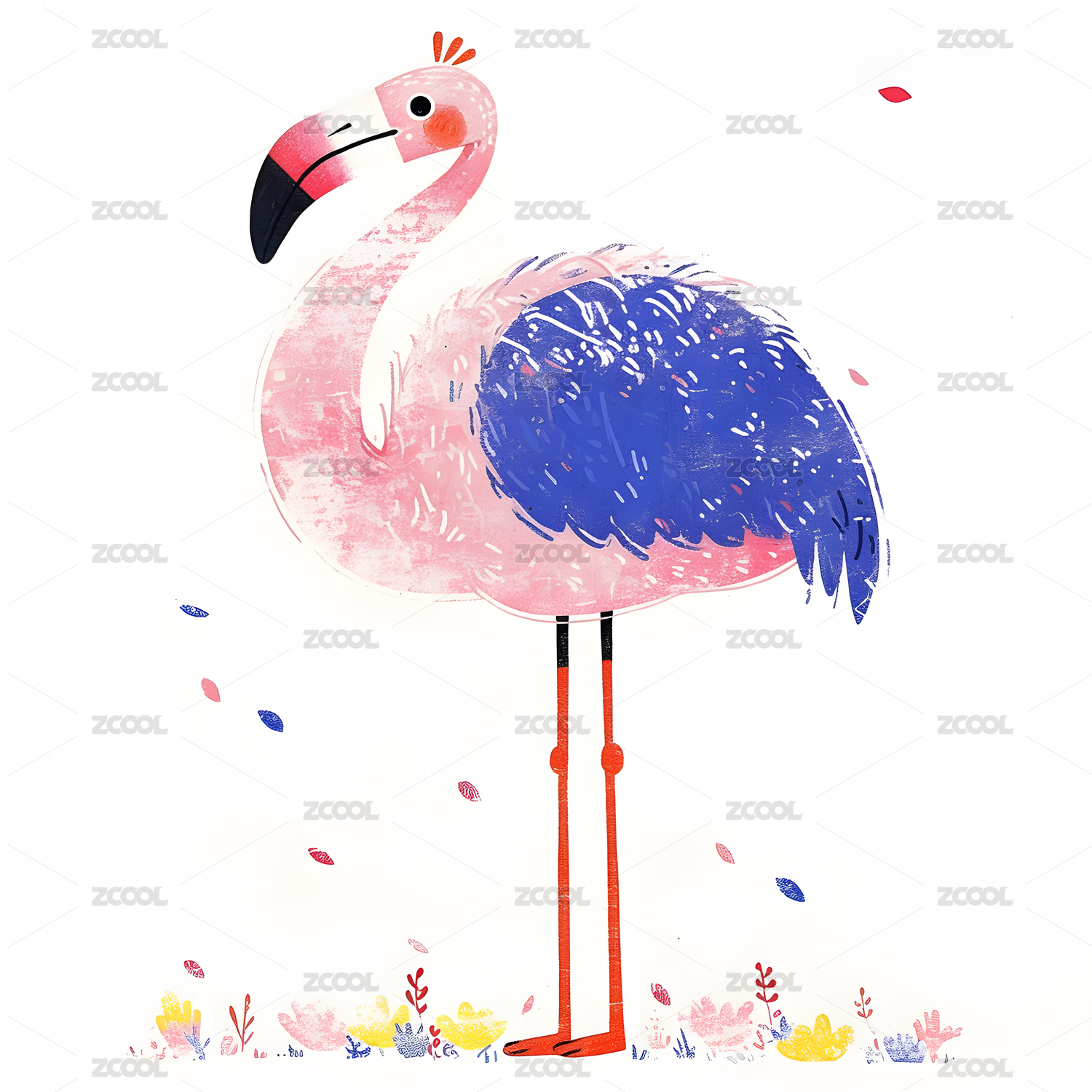 儿童插画风格火烈鸟