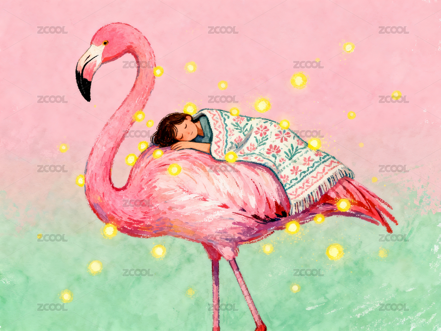 熟睡的人骑着粉色火烈鸟