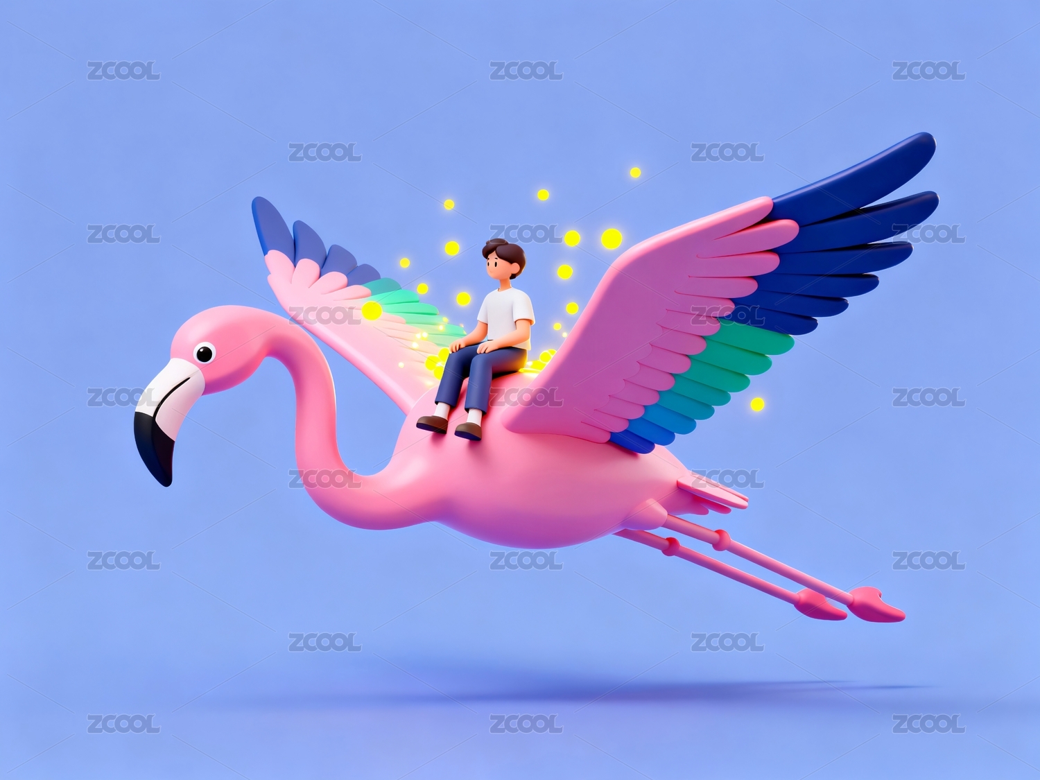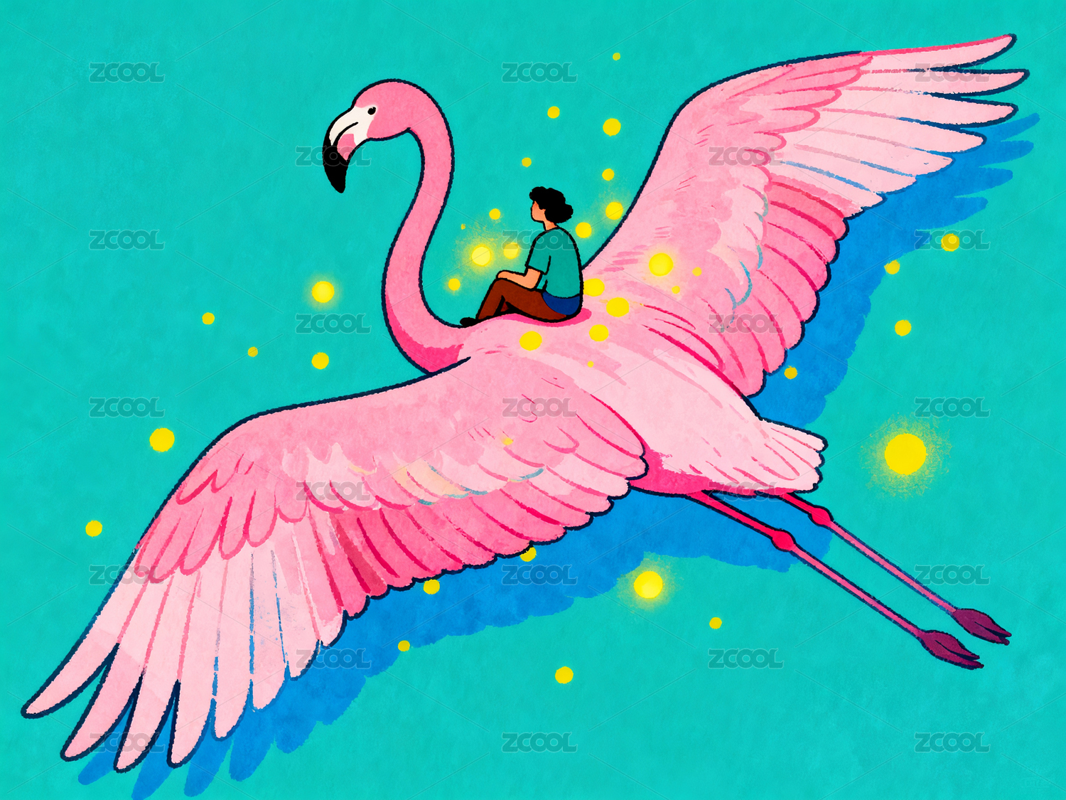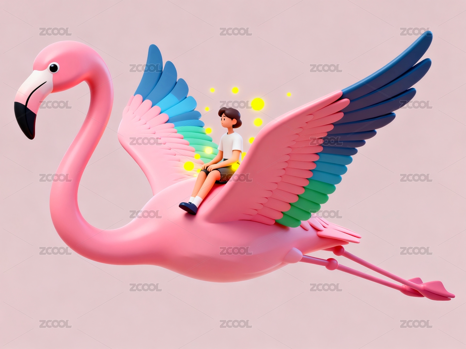 骑乘粉色火烈鸟翱翔