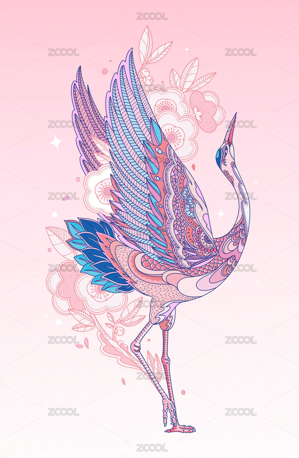 一只仰头望天的鹤装饰性图案