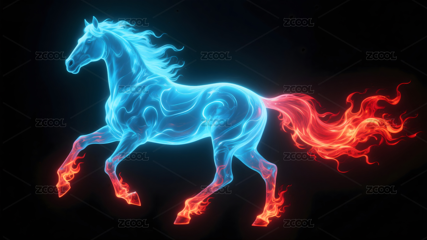 骏马,火焰,霓虹,插画,艺术,跑动,创意,色彩,光效,抽象