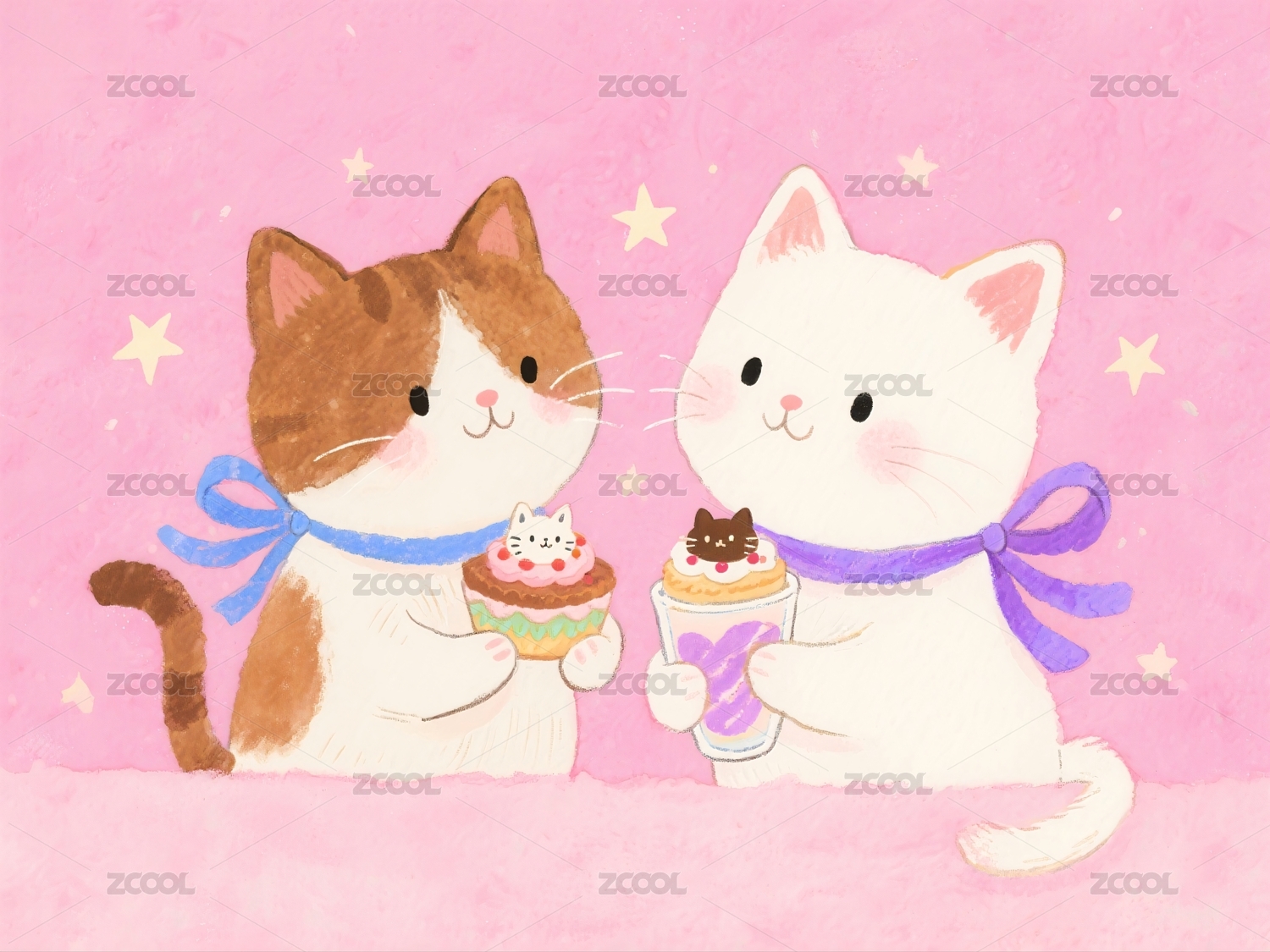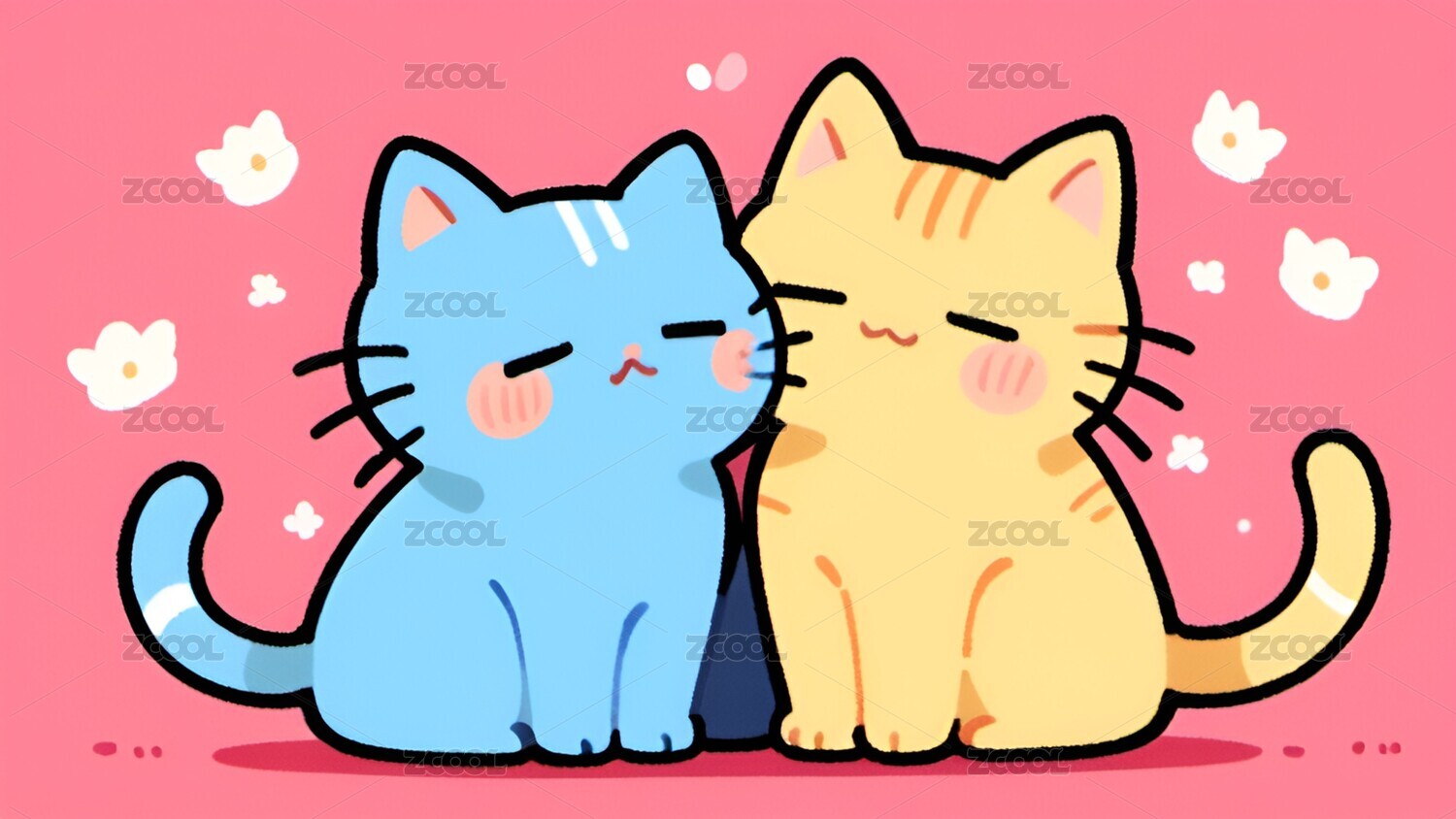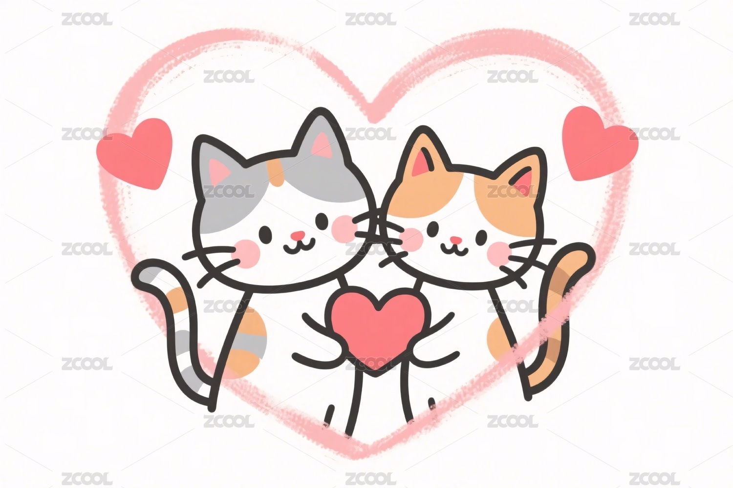 猫咪,卡通,爱心,星空,月亮,夜空,动物,插画,可爱,浪漫