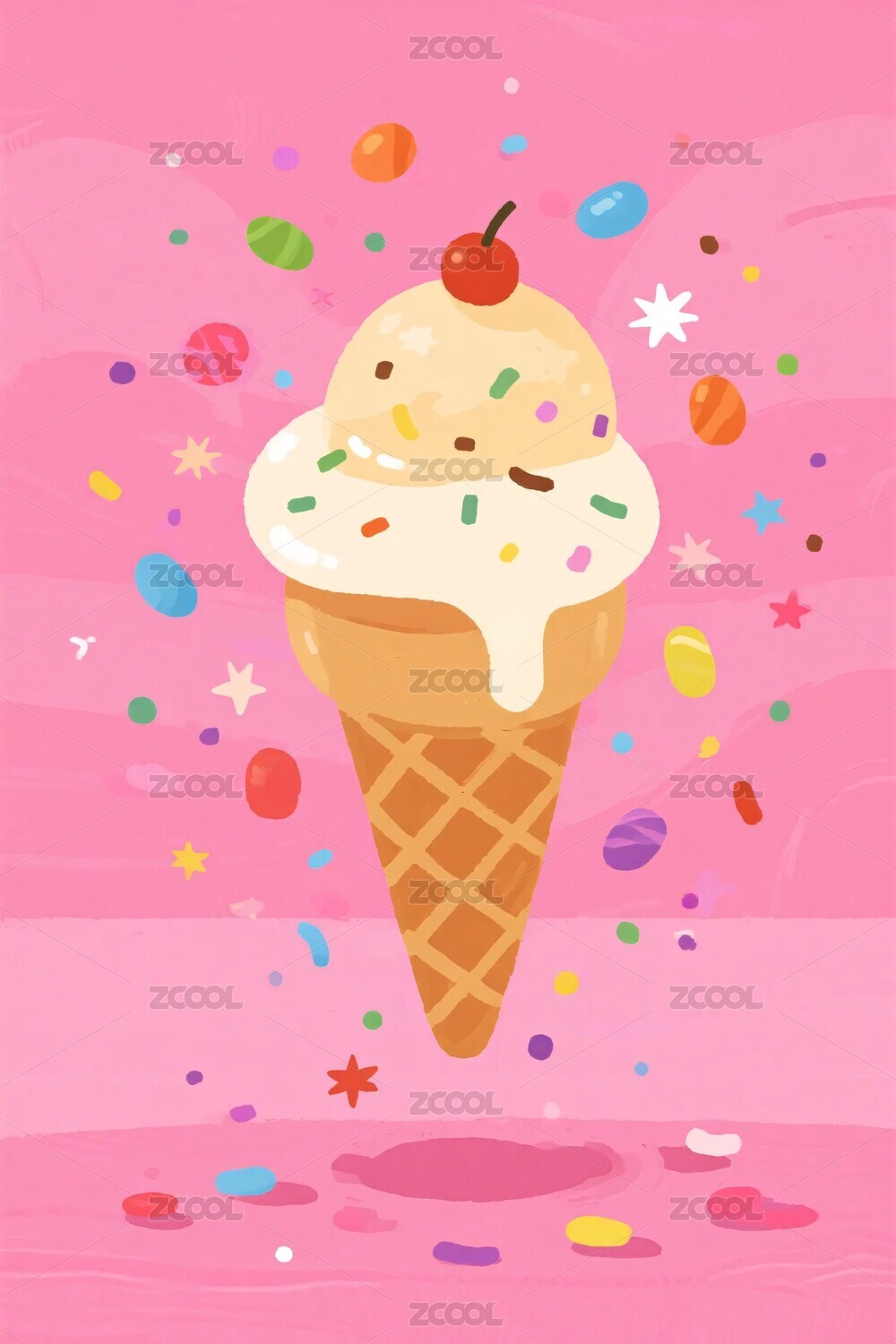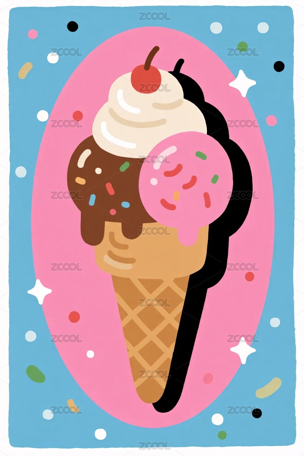 冰淇淋,甜筒,色卡,圆形,插画,卡通,艺术,色彩,美食,儿童