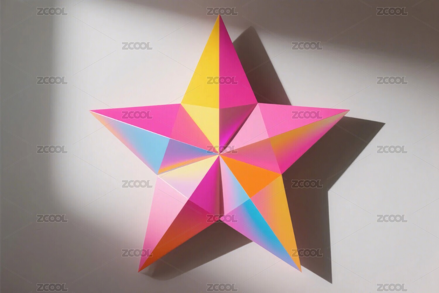 多彩立体五角星置于浅绿色背景