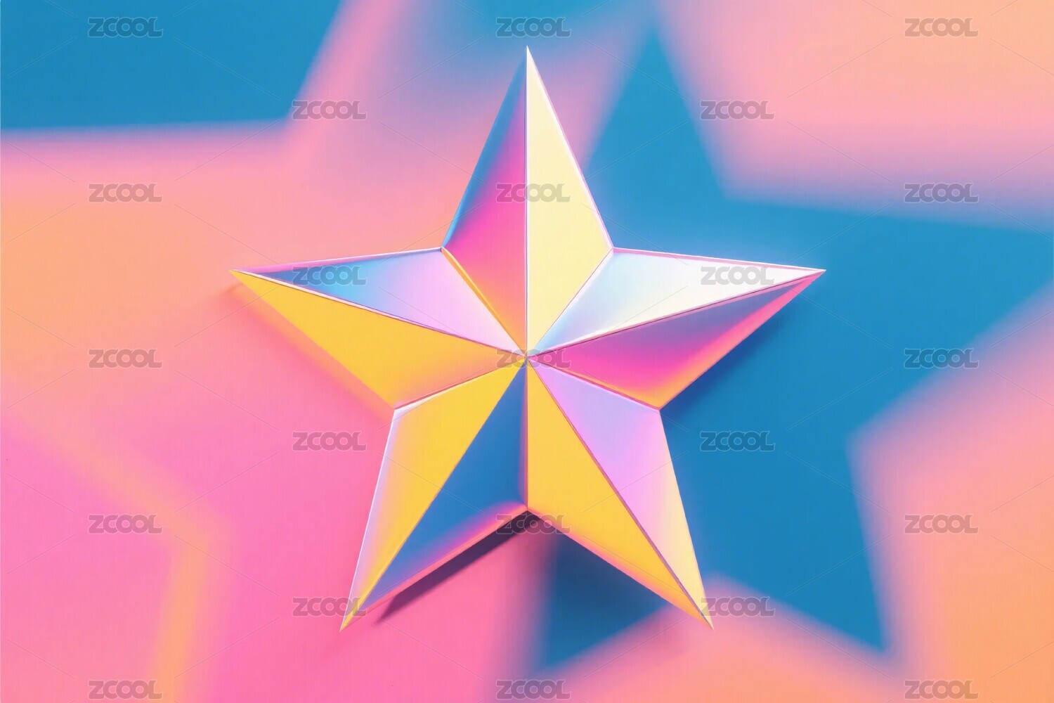 双色渐变背景上的立体五角星
